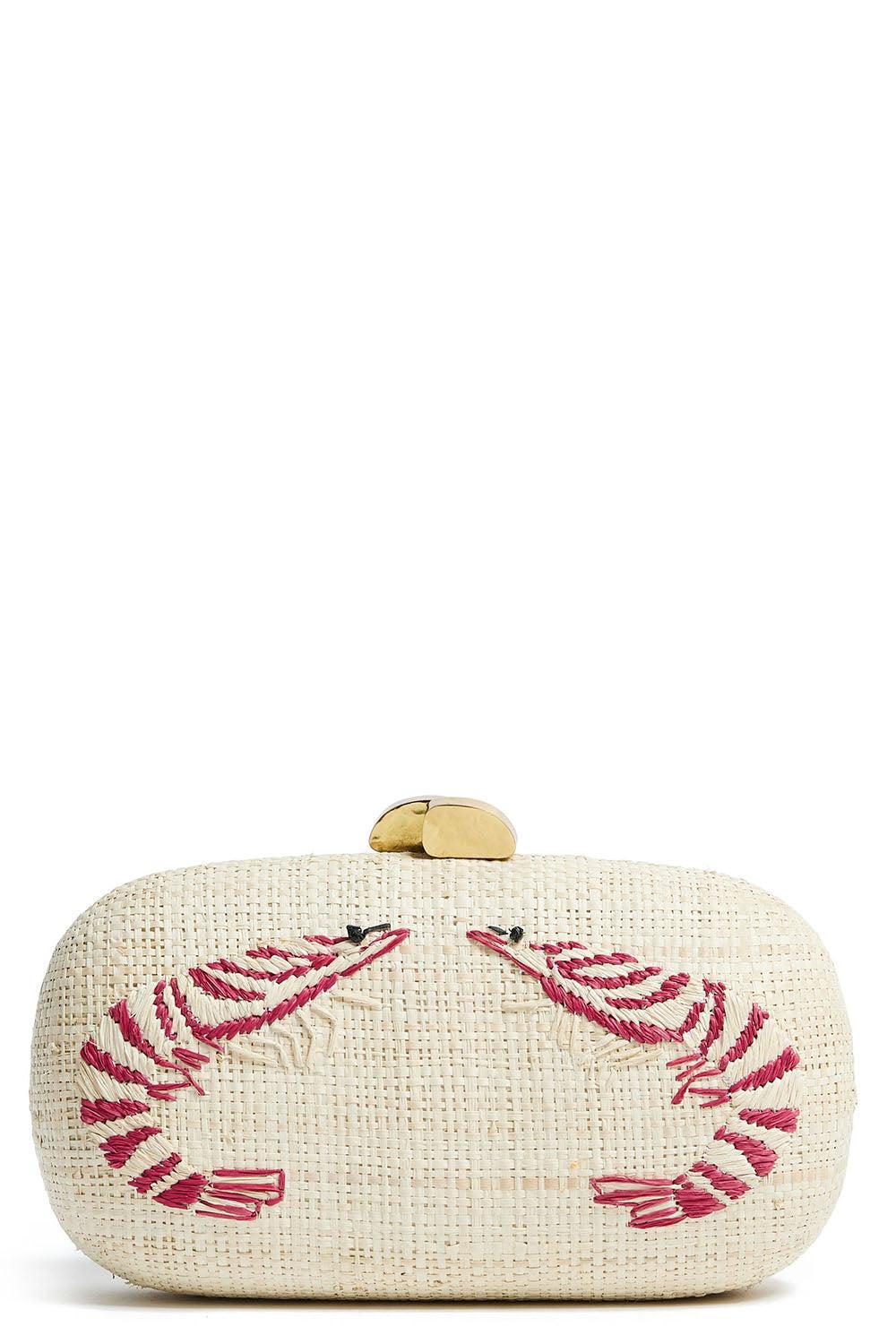 Pamela Munson shrimp cocktail clutch in natural/red.