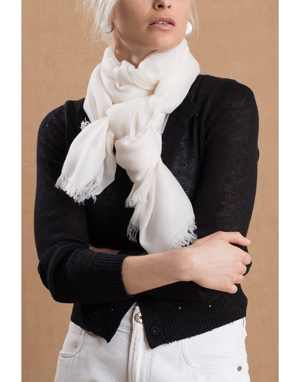 This Brunello Cucinelli cashmere scarf will keep you cozy no matter the temperature.