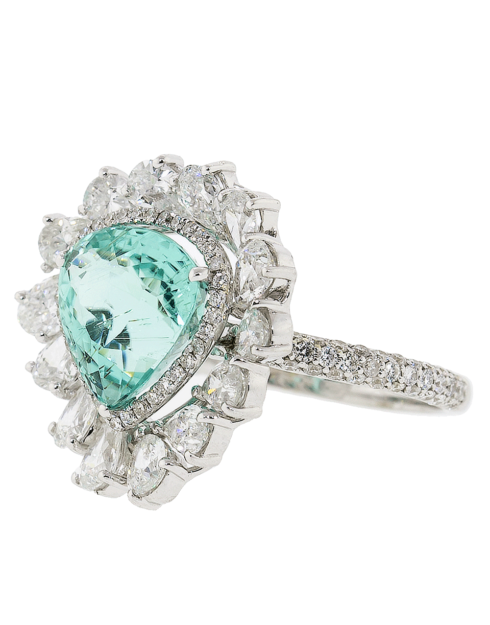 Graziela obsession ring with paraiba tourmaline and diamonds.