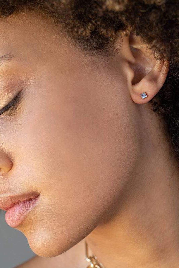 Andrea Fohrman pastel orange sapphire square stud earring. For pierced ears.