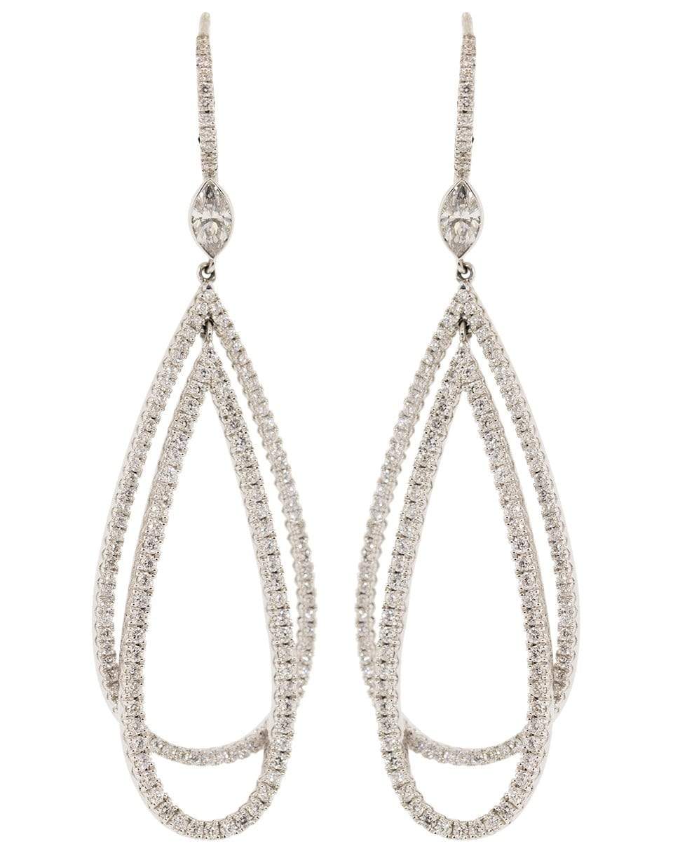 Kwiat double drop earrings with diamonds set in 18k white gold. For pierced ears.