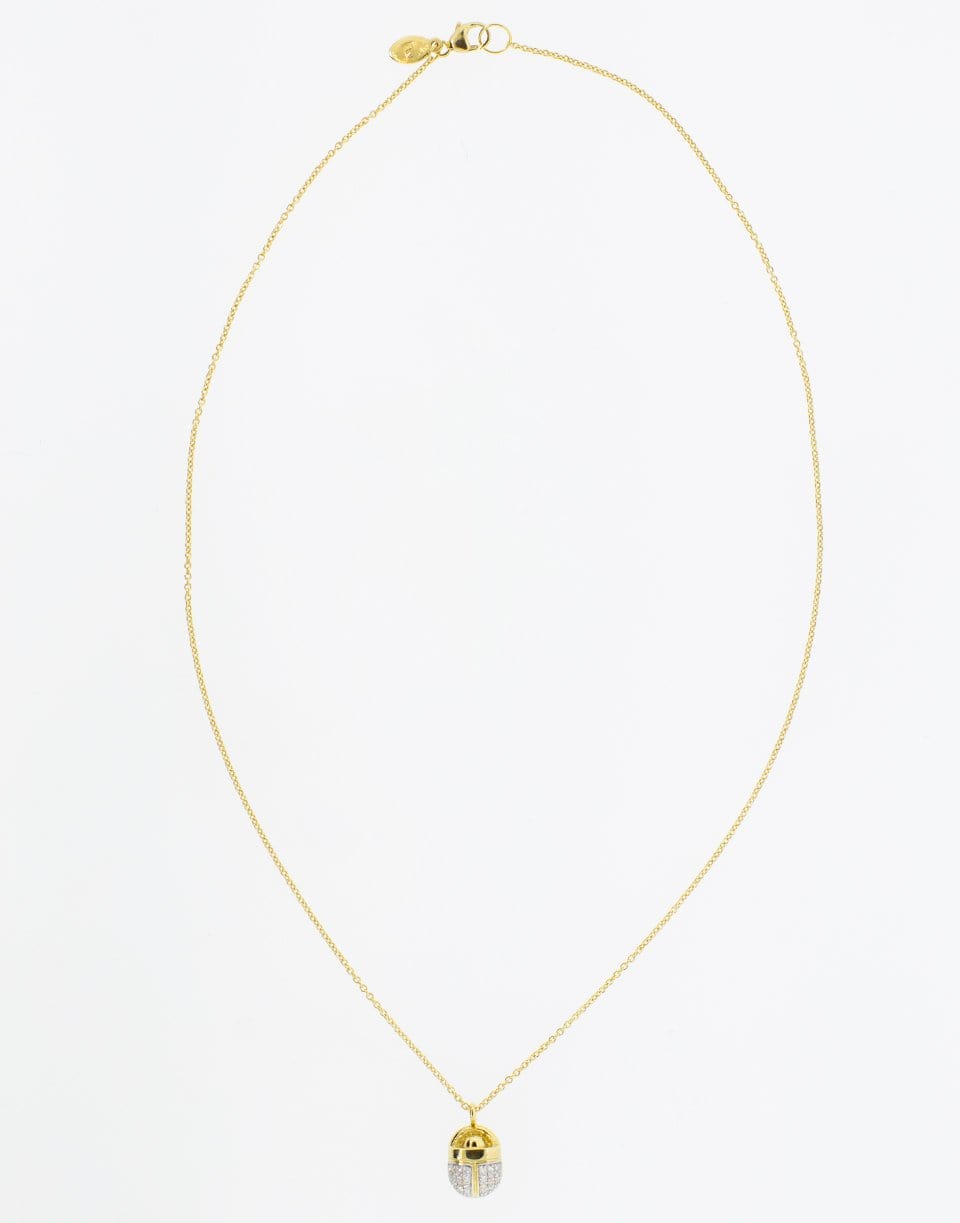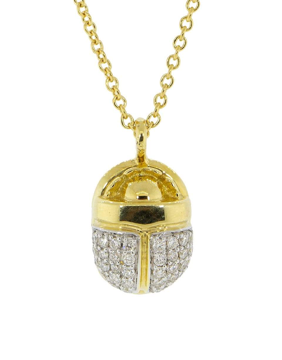 Pave diamond scarab necklace by Pamela Love with lobster claw closure.
