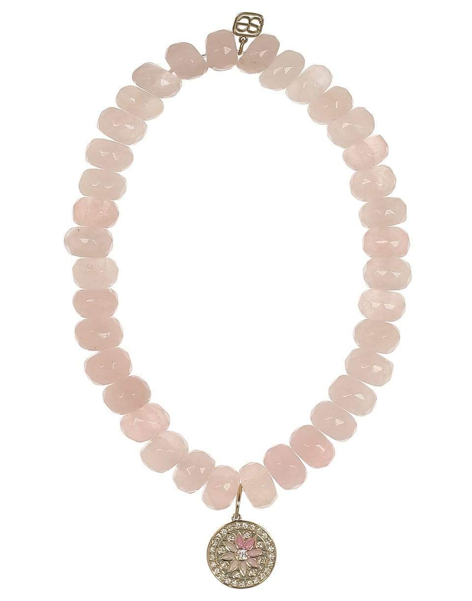 Sydney Evan Rose quartz bead bracelet with diamond kaleidoscope charm.