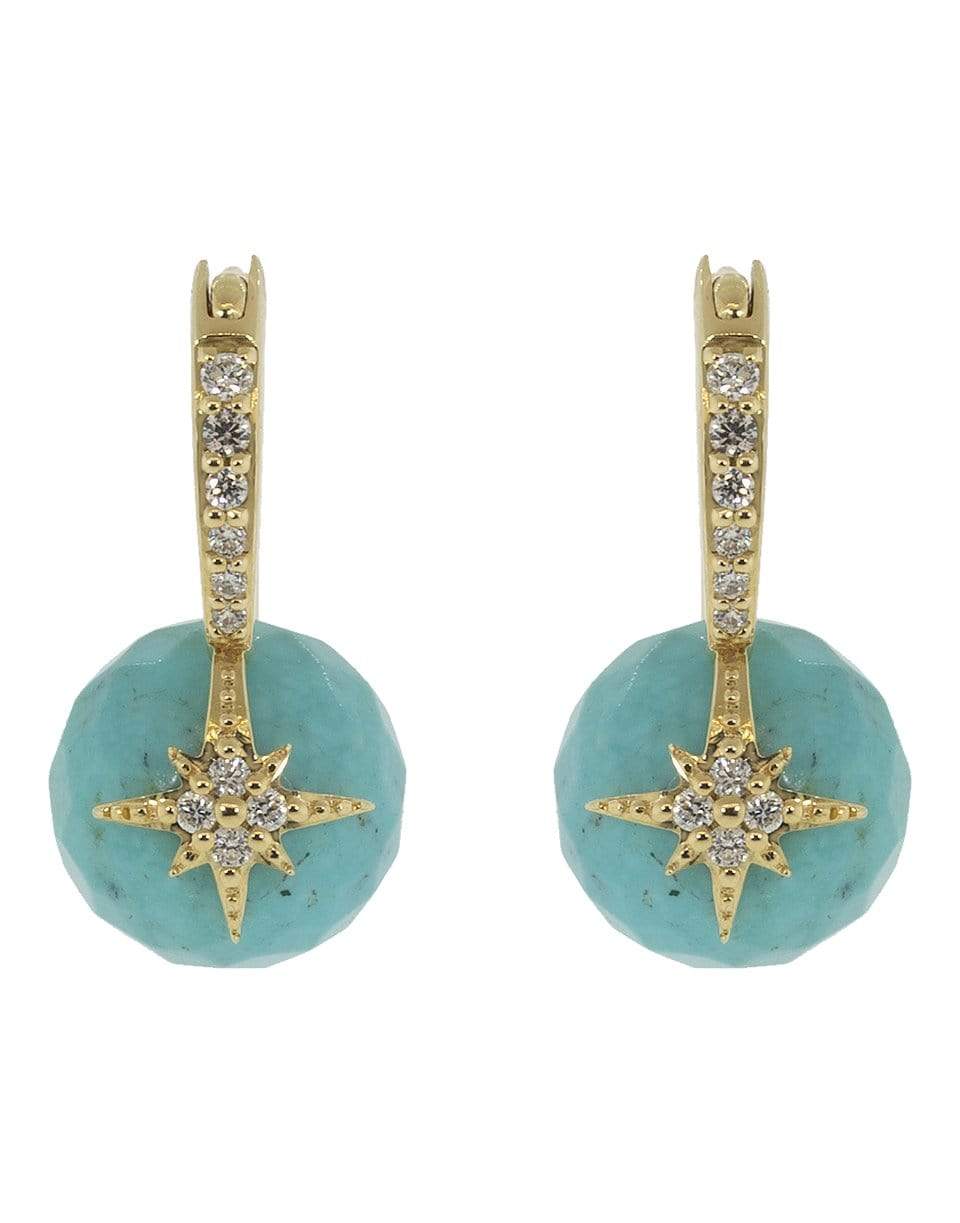 Pave diamonds starburst bead earrings on faceteed turquoise bead.