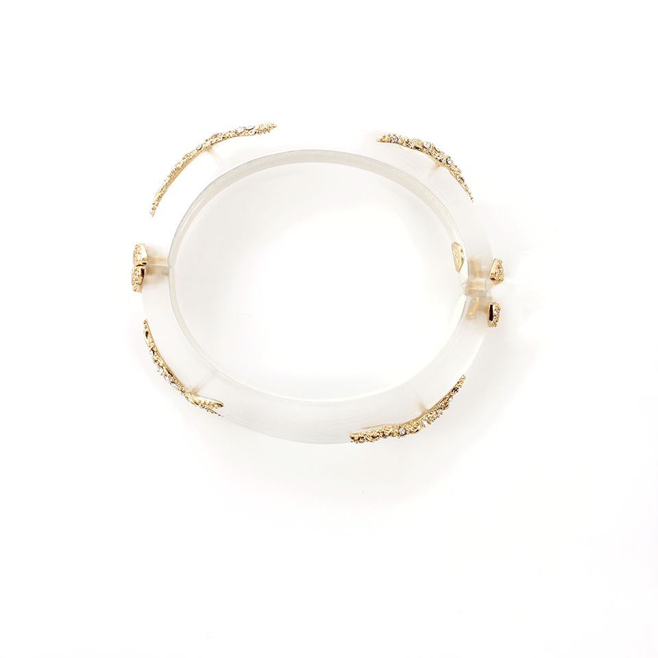 Lucite With Pave Crystals And Goldtone Vine Metal Detailing