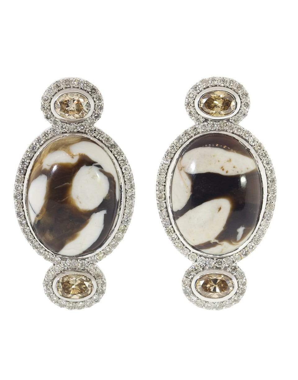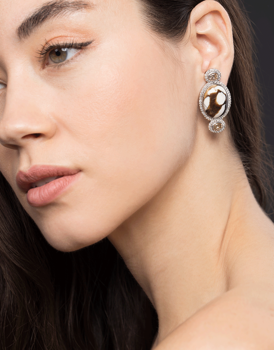 Guita M peanut wood earrings with white and brown diamonds set in 18k white gold. For pierced ears.