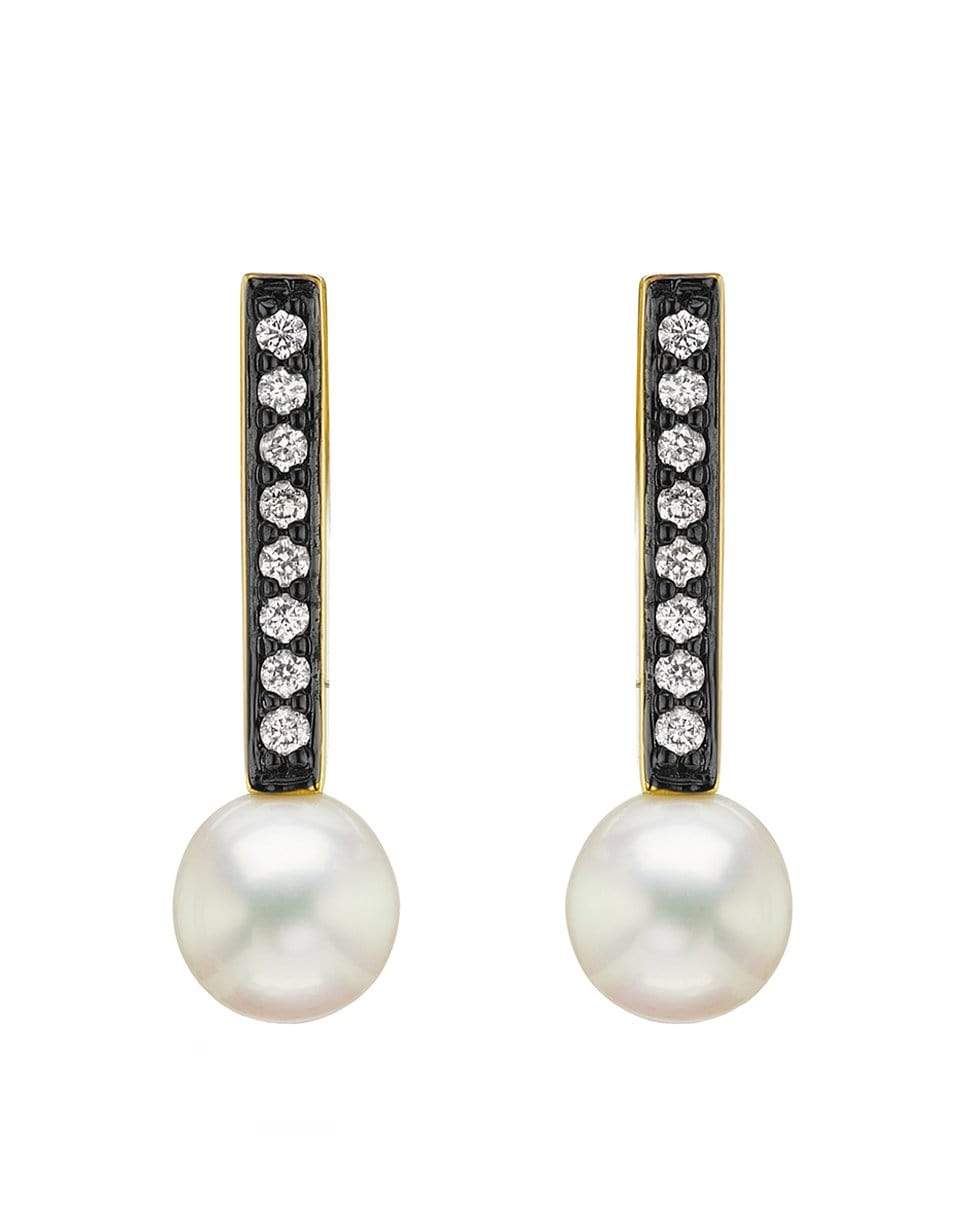 Sorellina natural fresh water pearl and diamond mini stick earrings. For pierced ears.