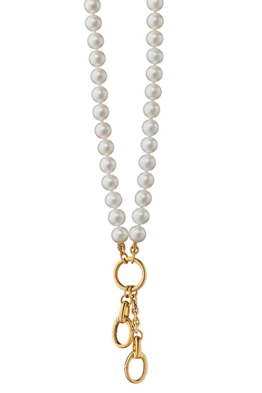Monica Rich Kosann pearl charm chain enhancer necklace with two charm stations. Easily add change or rearrange your charms on the hinged links, wear alone or as a layered necklace.