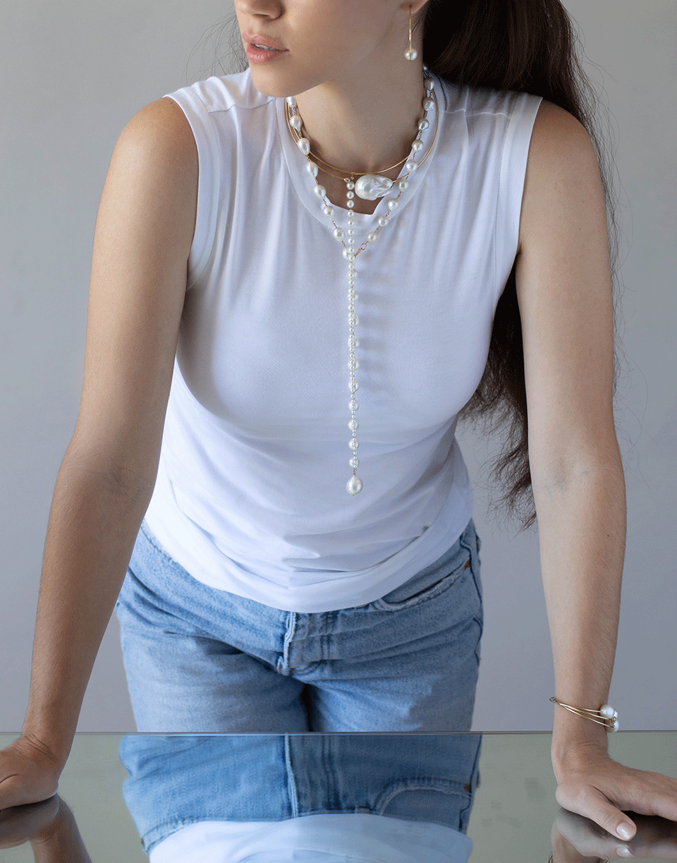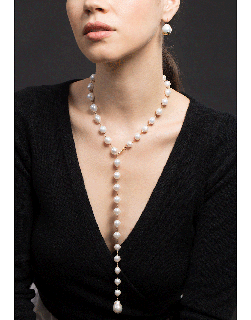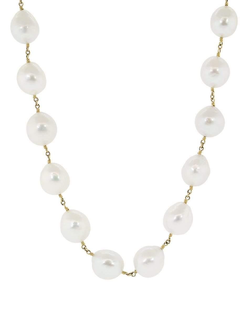 Mizuki Sea of Beauty Collection pearl necklace with adjustable clasp set in 14k yellow gold.