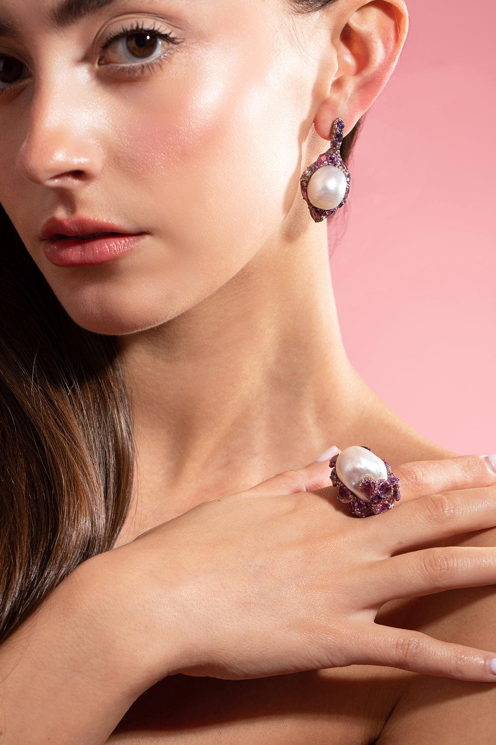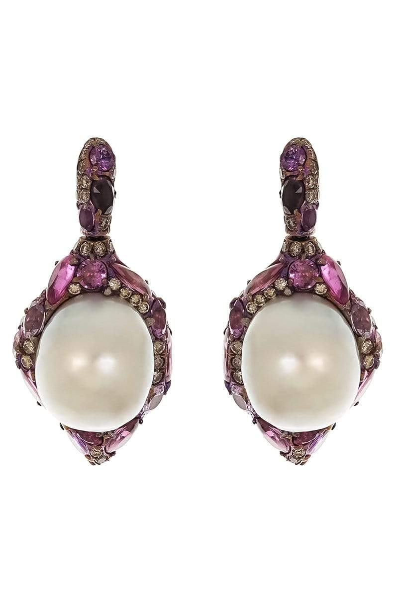 Arunashi pearl encased sapphire and diamond earrings.