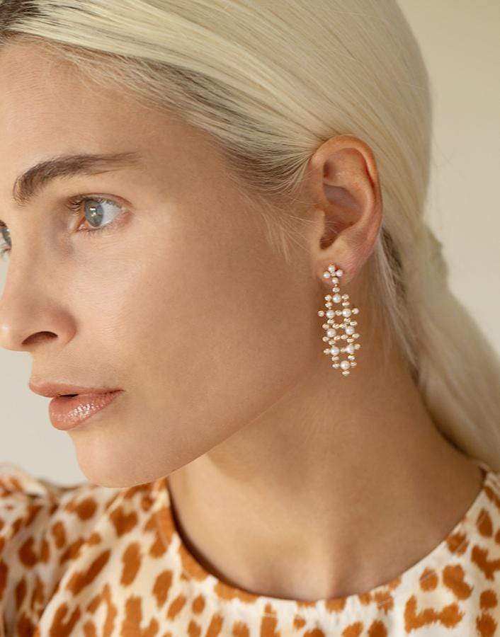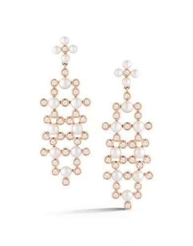 Dana Rebecca Pearl Ivy drop earrings with a pearls and bezel set diamonds.