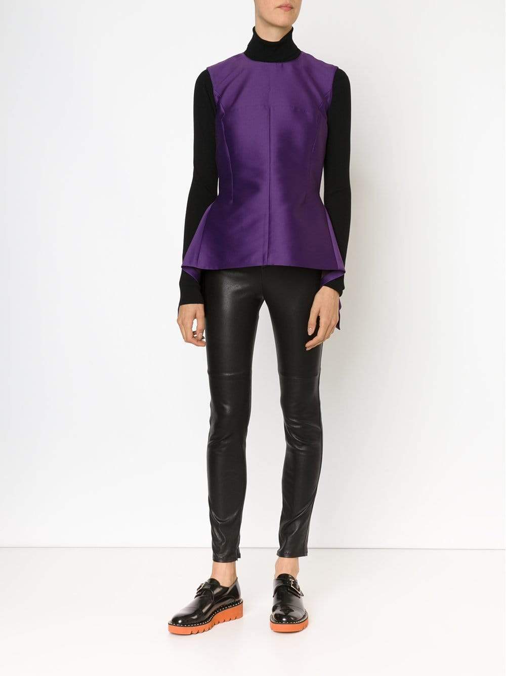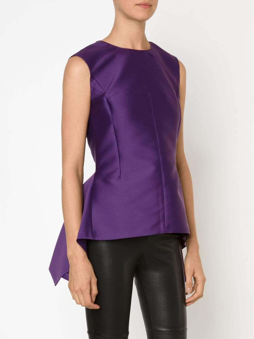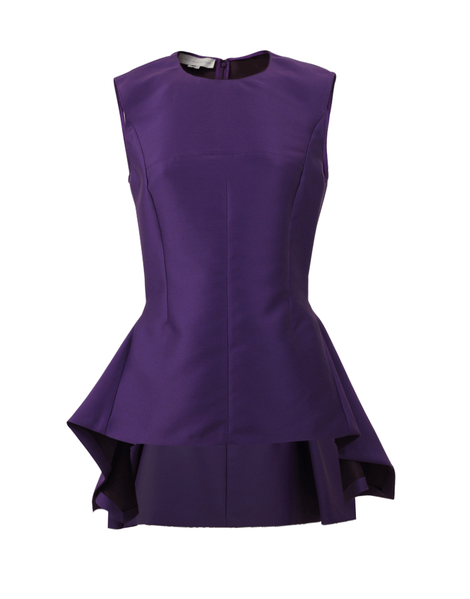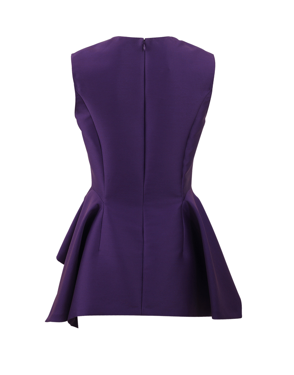 Asymmetrical Front To Back Hem With Peplum Back, All-Over Sheen, And Slim-Fitting Silhouette