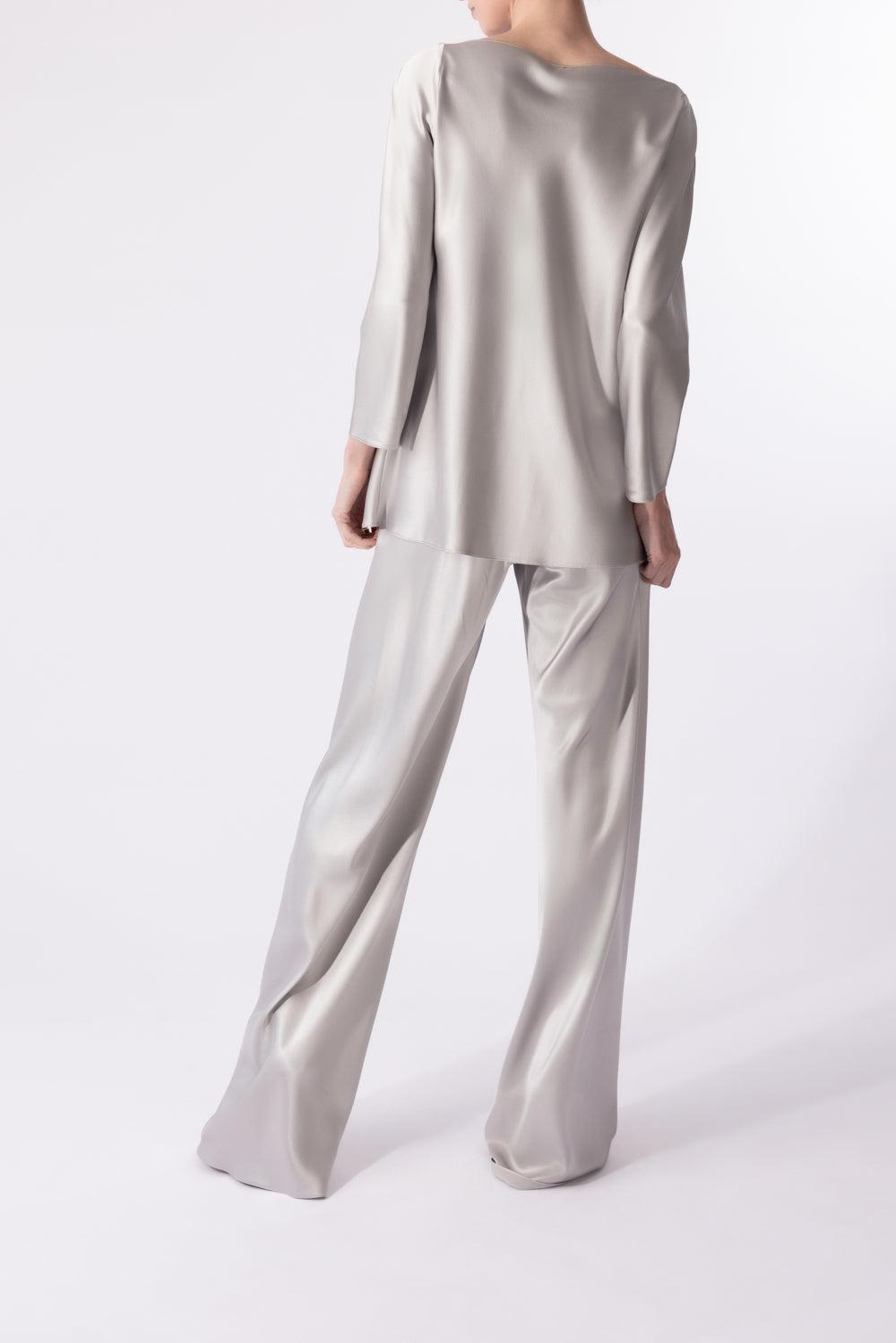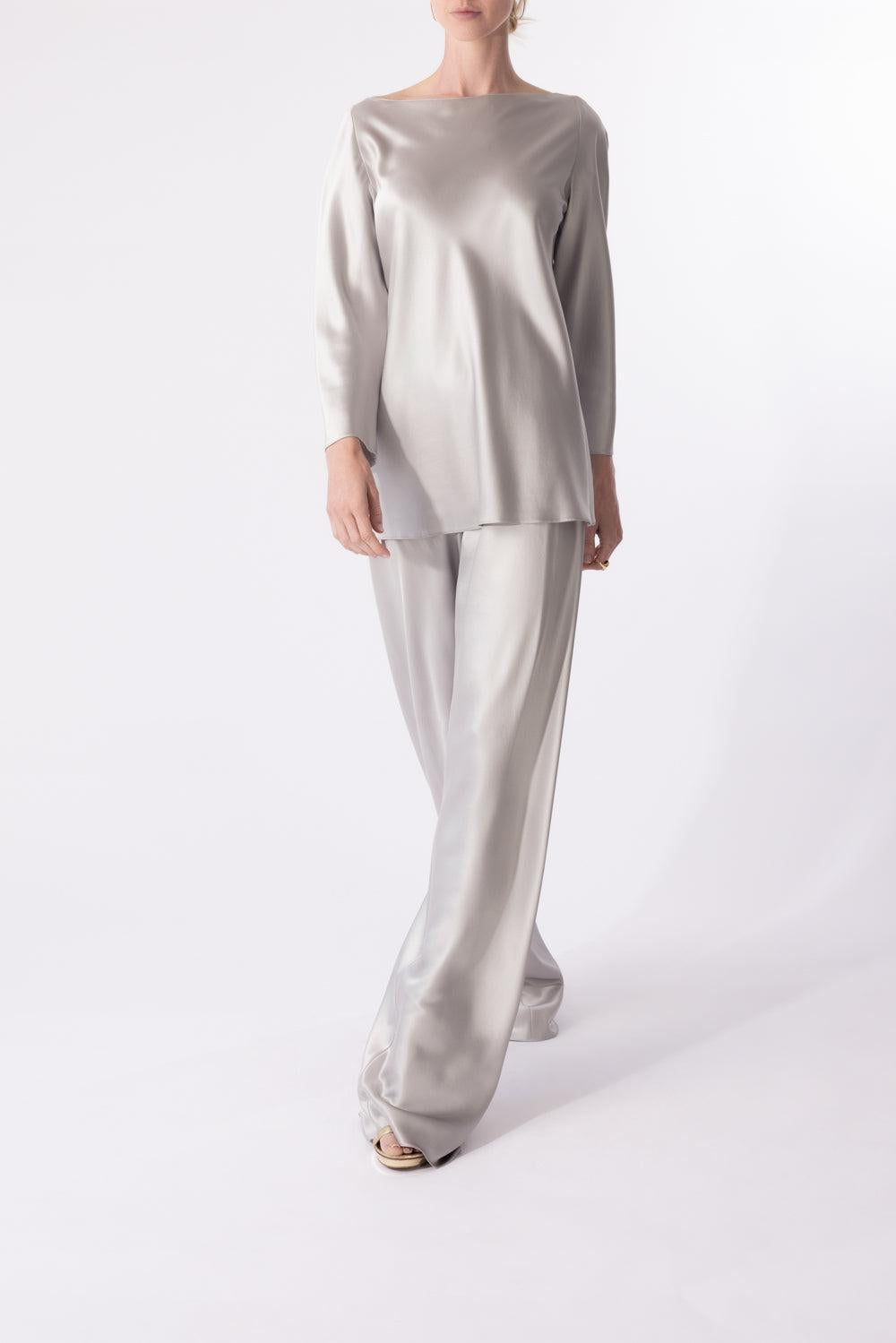 Bias wide leg pull-on pants from Peter Cohen fearturing a mid-rise, pull on style with an elastic waistline and a loose-fitting silhouette that flares at the bottom.