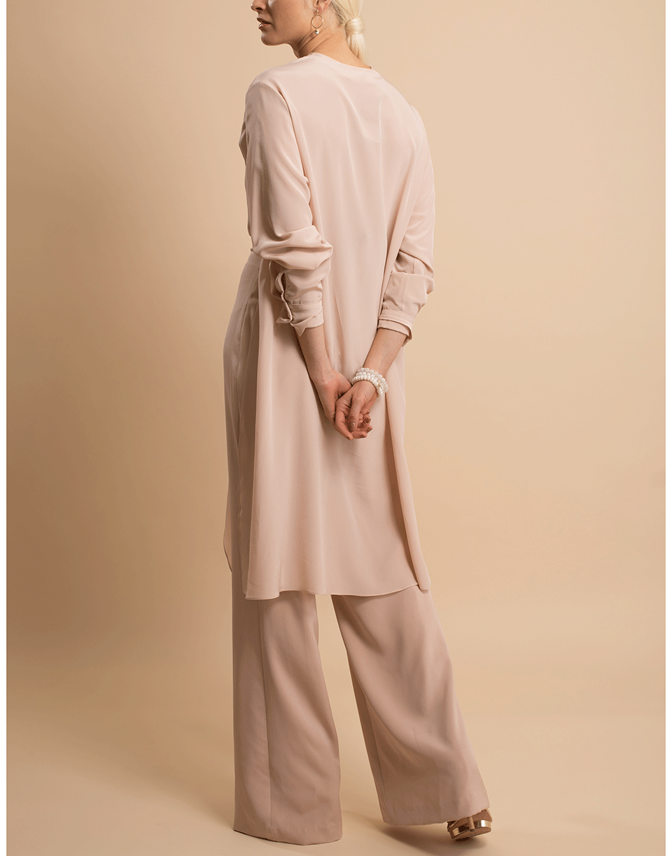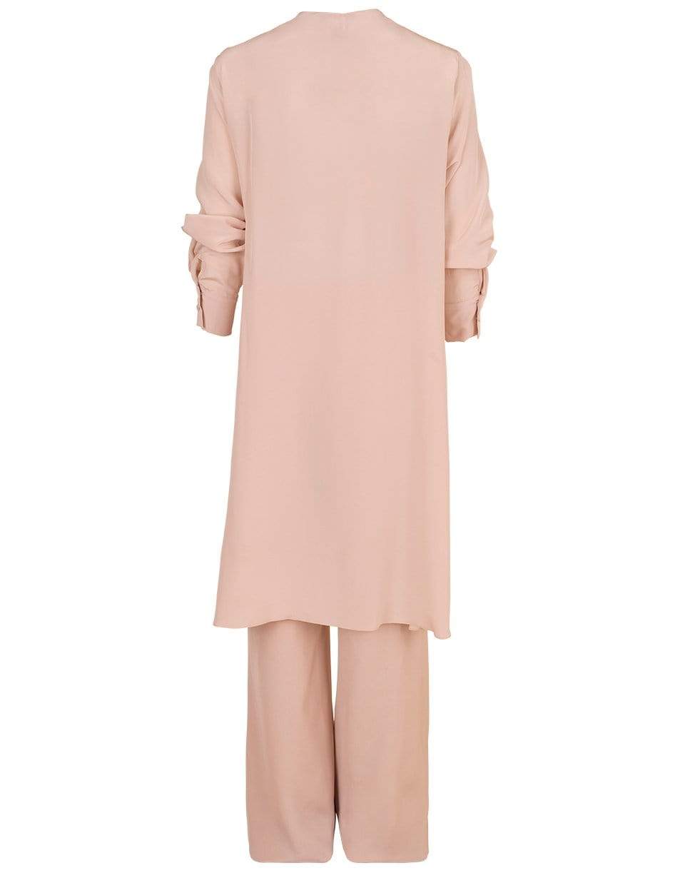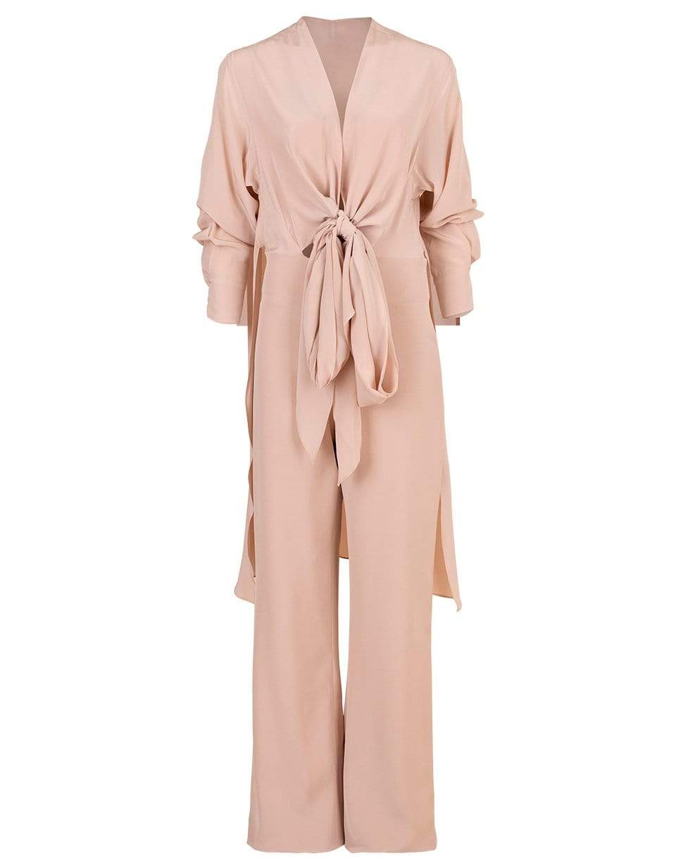 Silvia Tcherassi stretch silk Heidy jumpsuit with plunging V-neck, ties at waist, long sleeves, and a relaxed leg. Finished with a lightweight cape detail at back.