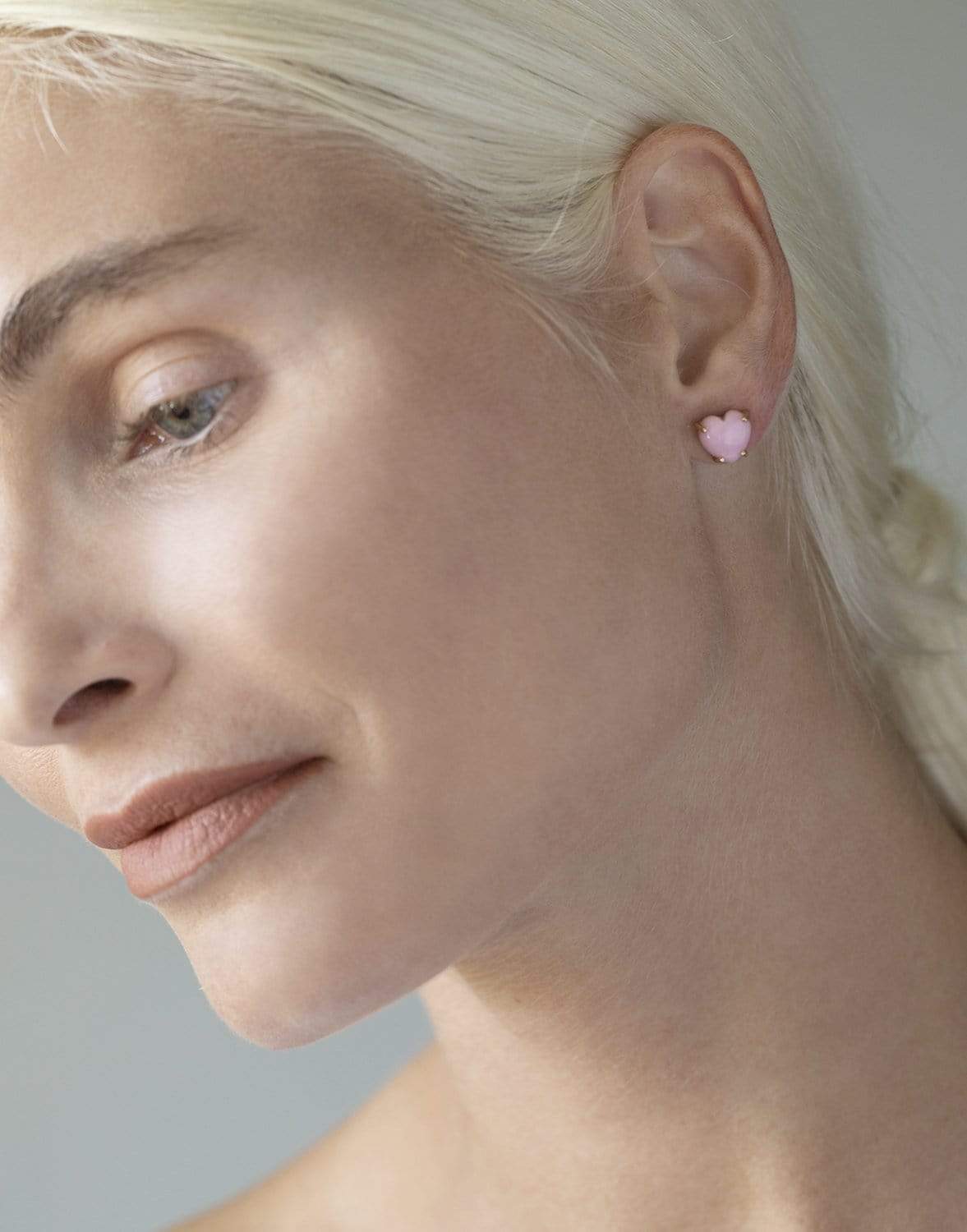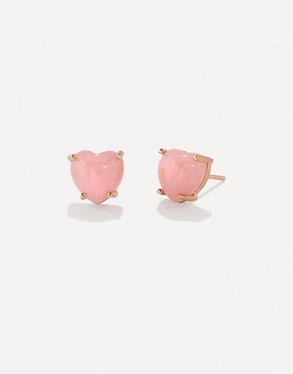 Irene Neuwirth cabochon heart pink opal love studs. From the Love Collection, a darling pair of 18k rose gold studs set with heart-shaped pink opal cabochons. The perfect size for everyday wear.