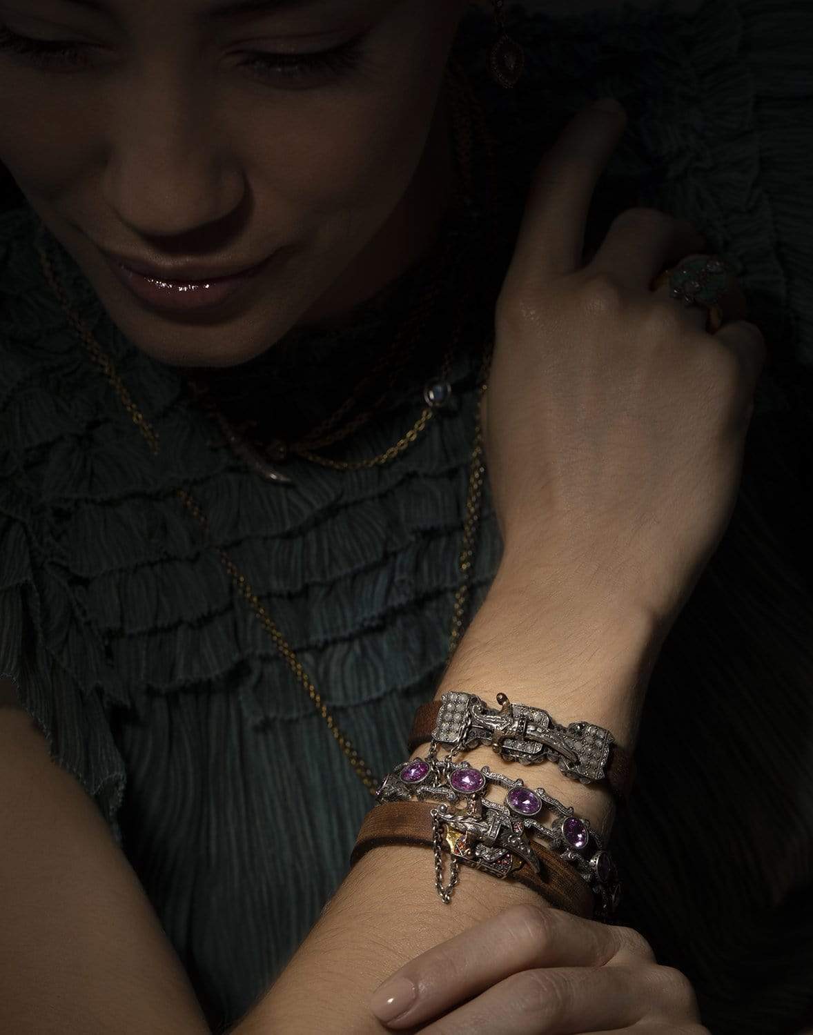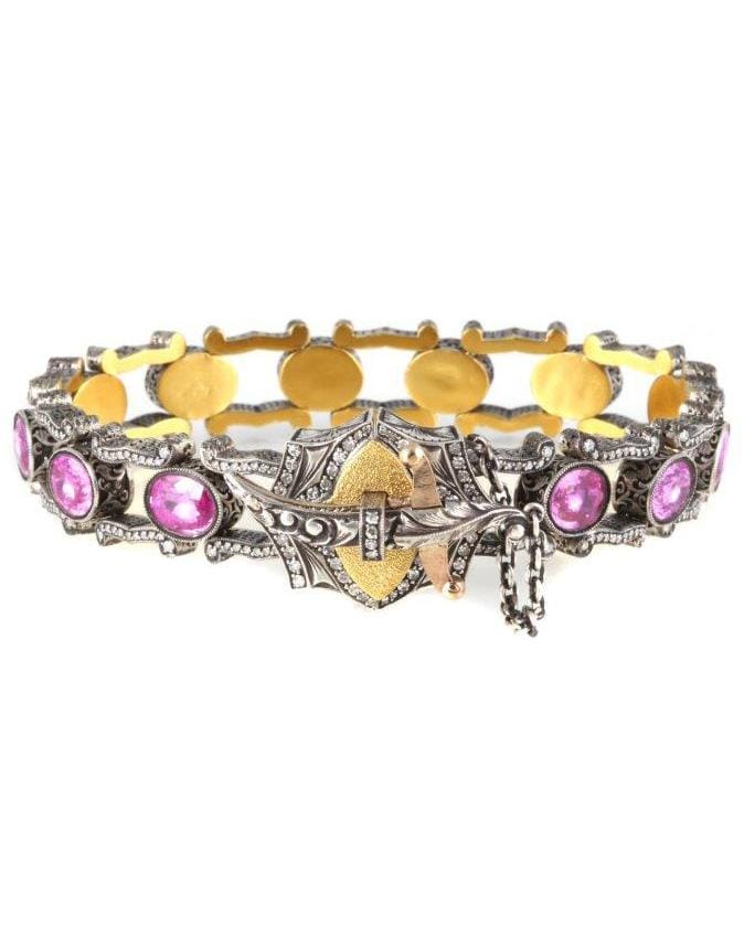 Sevan Bicakci Pink sapphire and diamond tank track bracelet.