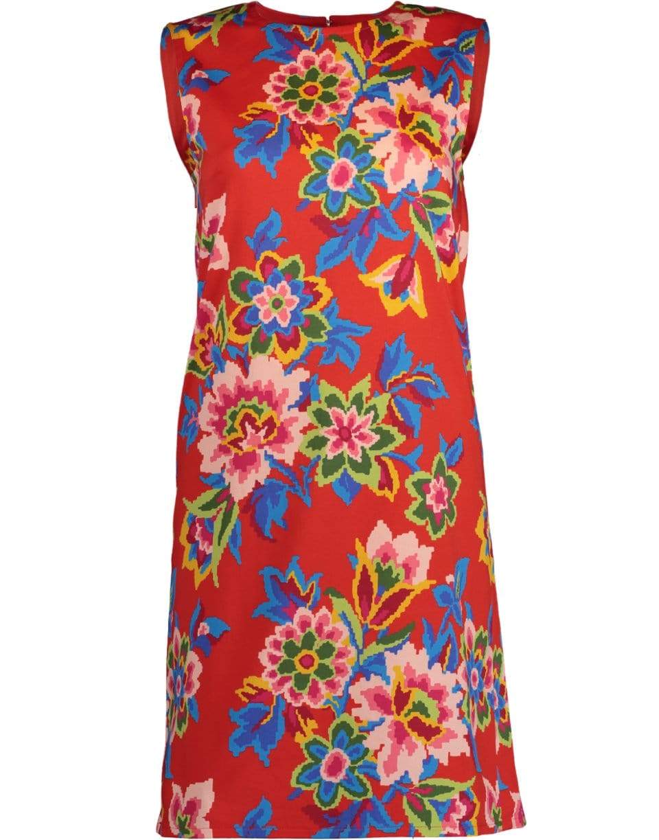 Pixel floral print shift dress from Carolina Herrera featuring a regular fit, round neckline, sleeveless design, concealed rear zip fastening, and a short length.