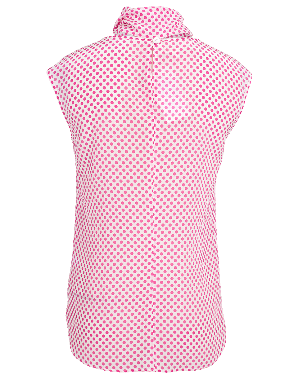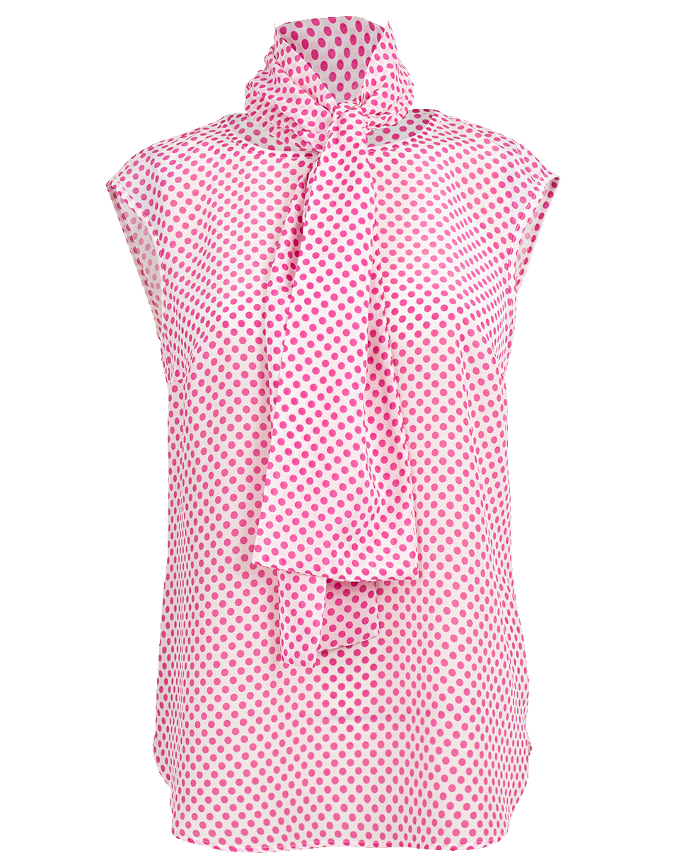 This pink polka dot blouse by Maison Common features a sleeveless cut with a round neckline, matching detachable necktie and a regular fit.