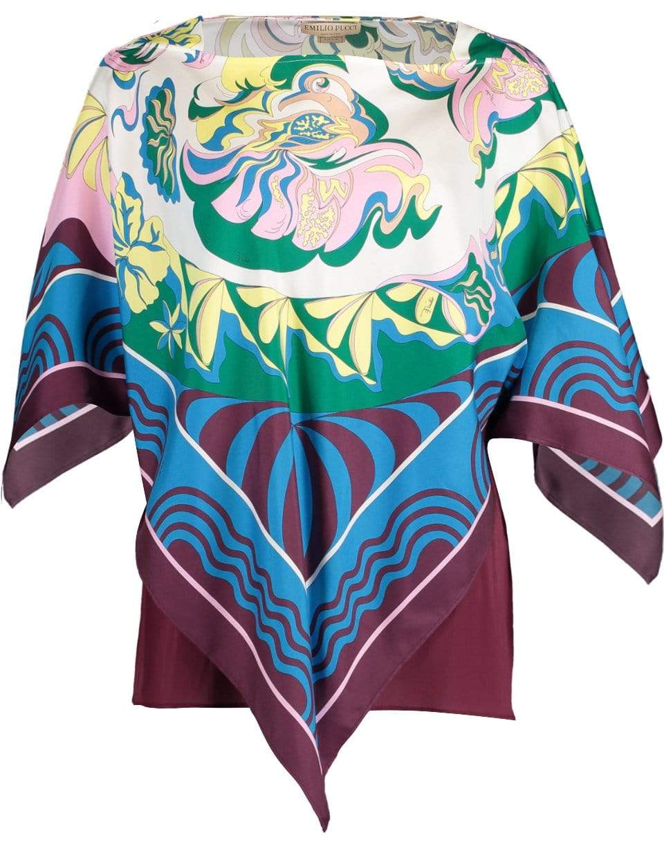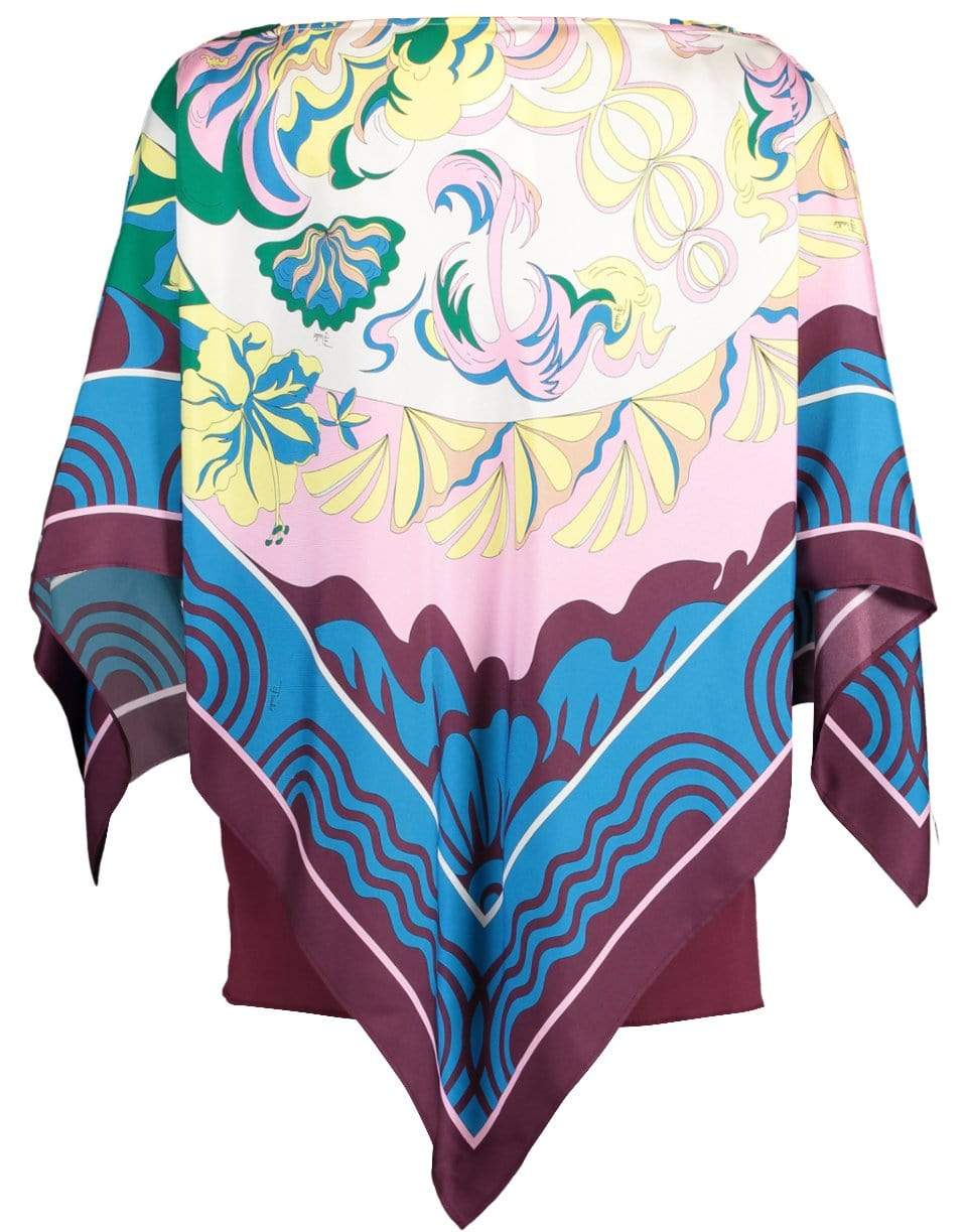 Pullover scarf print poncho top with boat neckline and burgundy cami from Emilio Pucci.