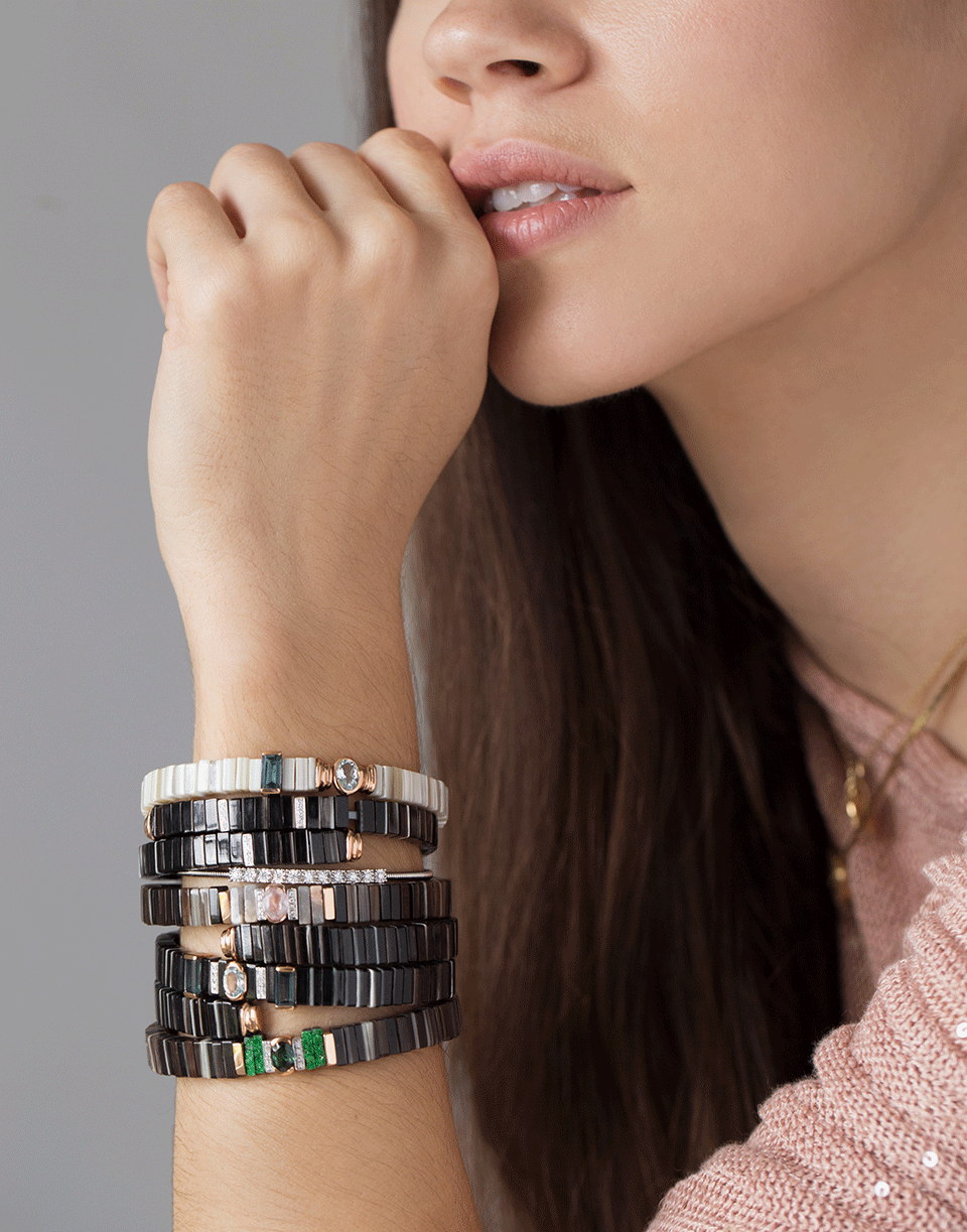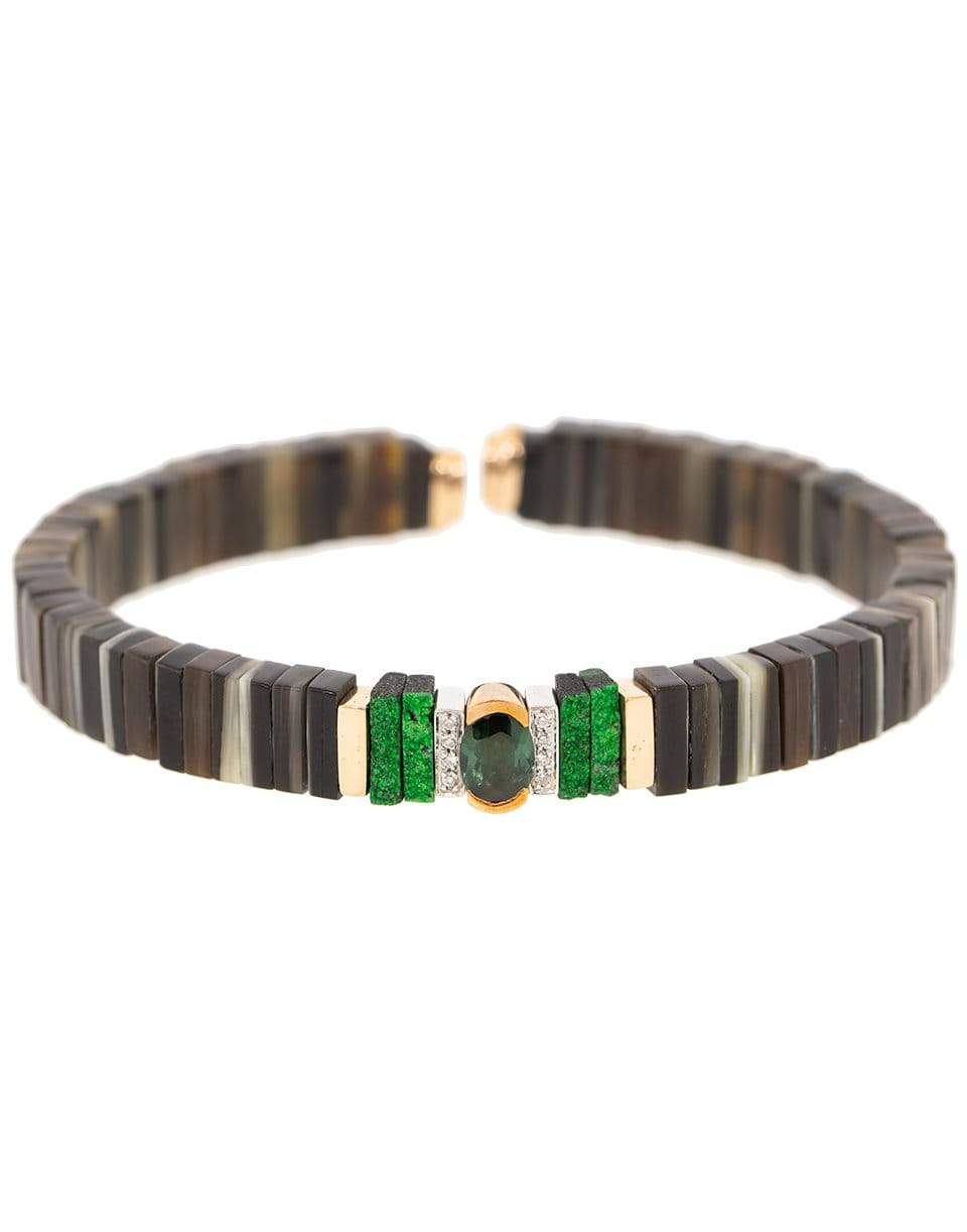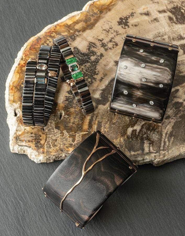 Federica Rettore pop zebu horn bracelet with green tourmaline.