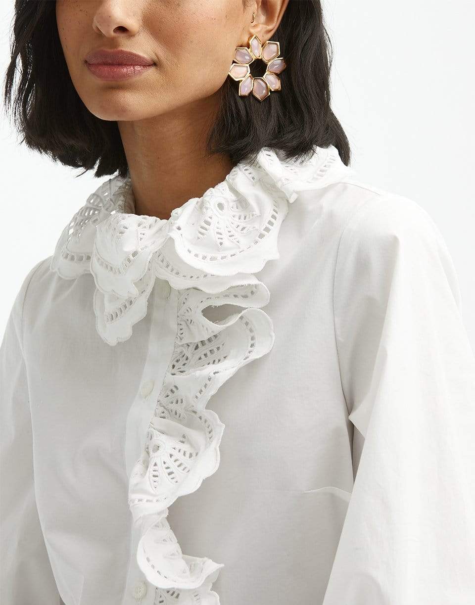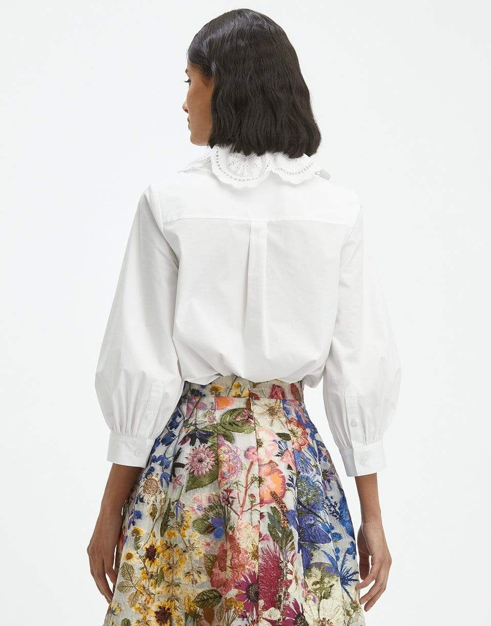 Oscar De La Renta poplin embroidered trim blouse in white.