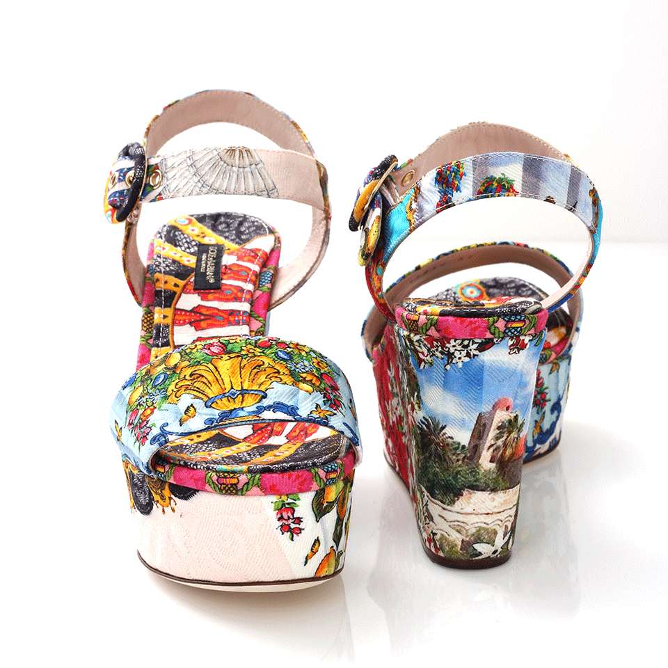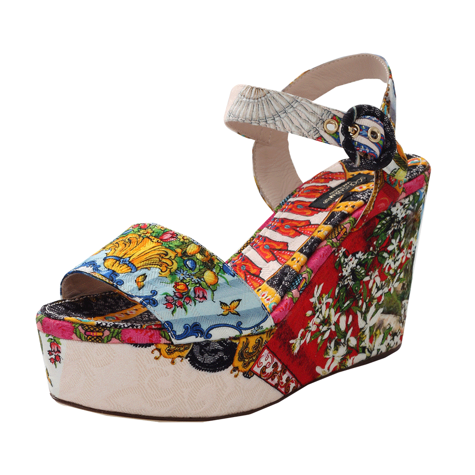 Printed Brocade Wedge Sandal From Dolce And Gabbana