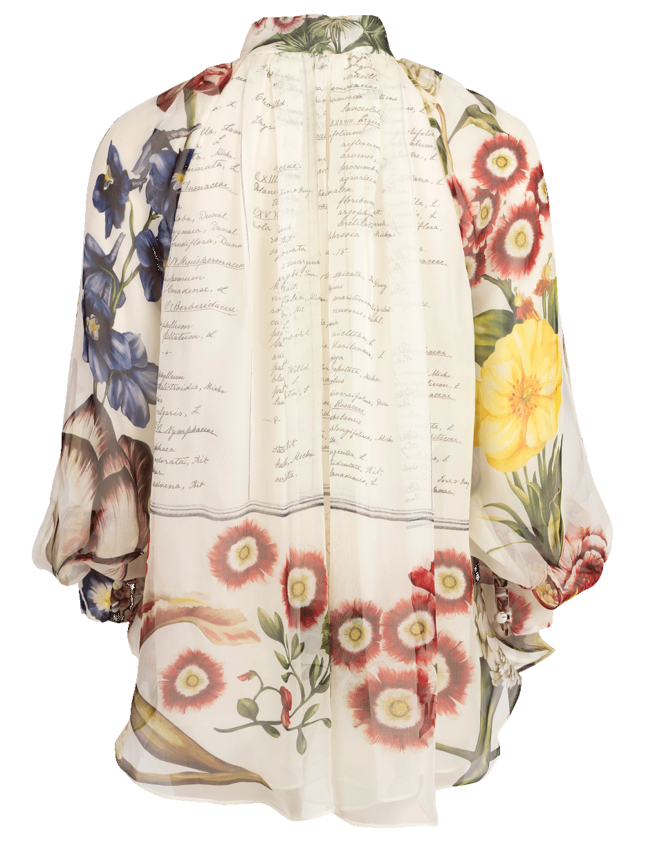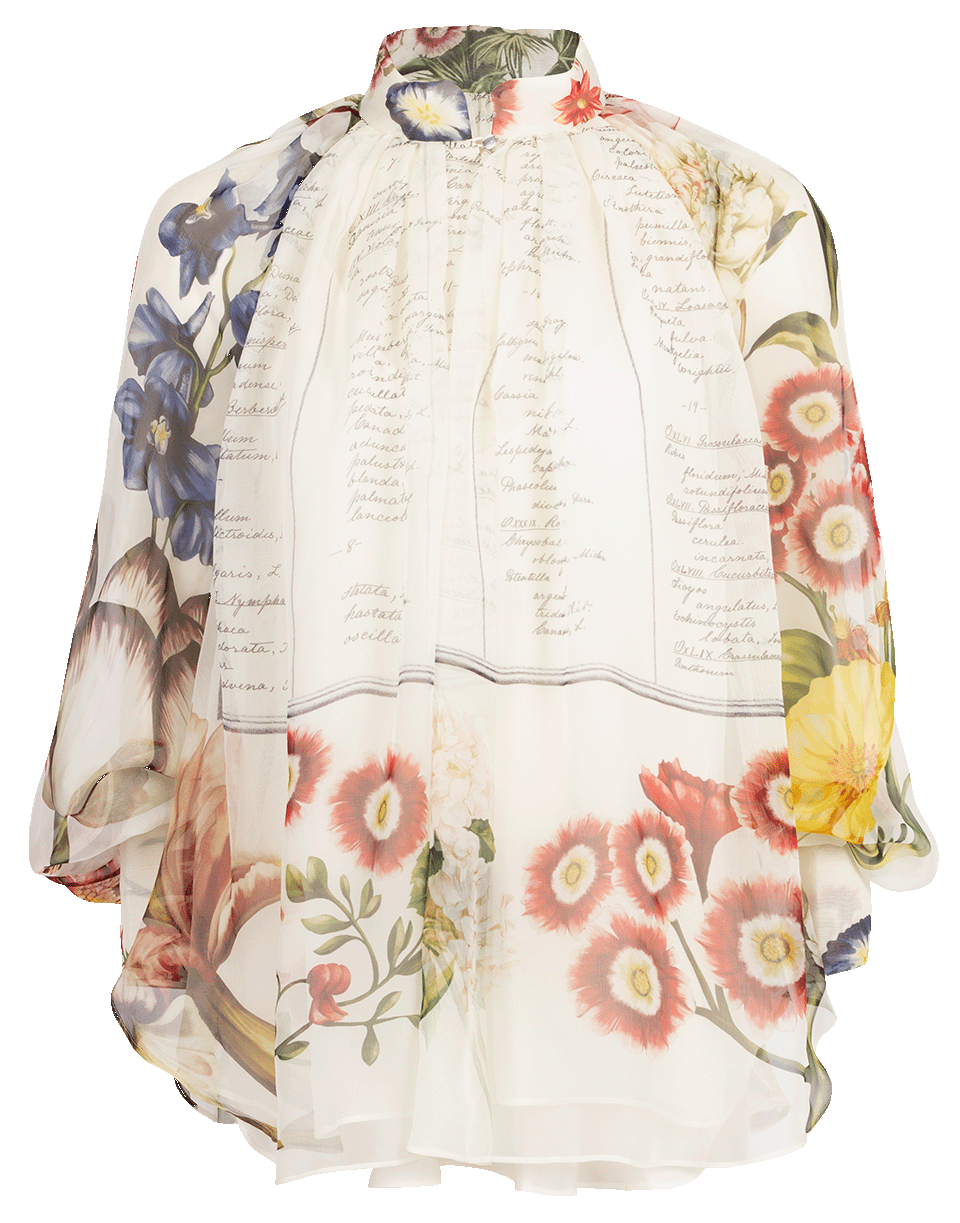 Printed high neck blouse from Oscar de la Renta featuring a light and relaxed silhouette with a high neck, long sleeves and a single button closure.