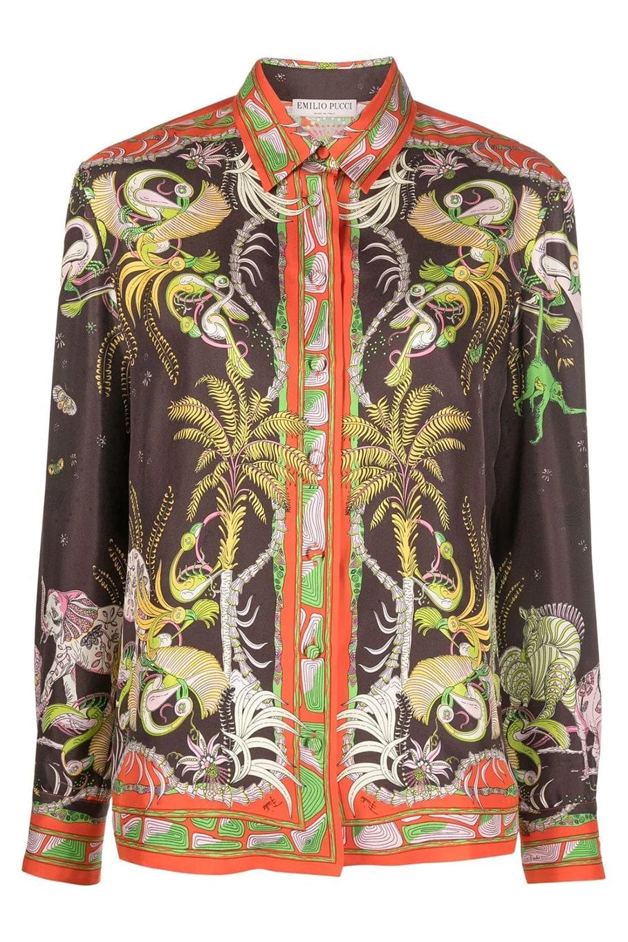 Emilio Pucci printed long sleeve button front shirt in arancio cioccolato.