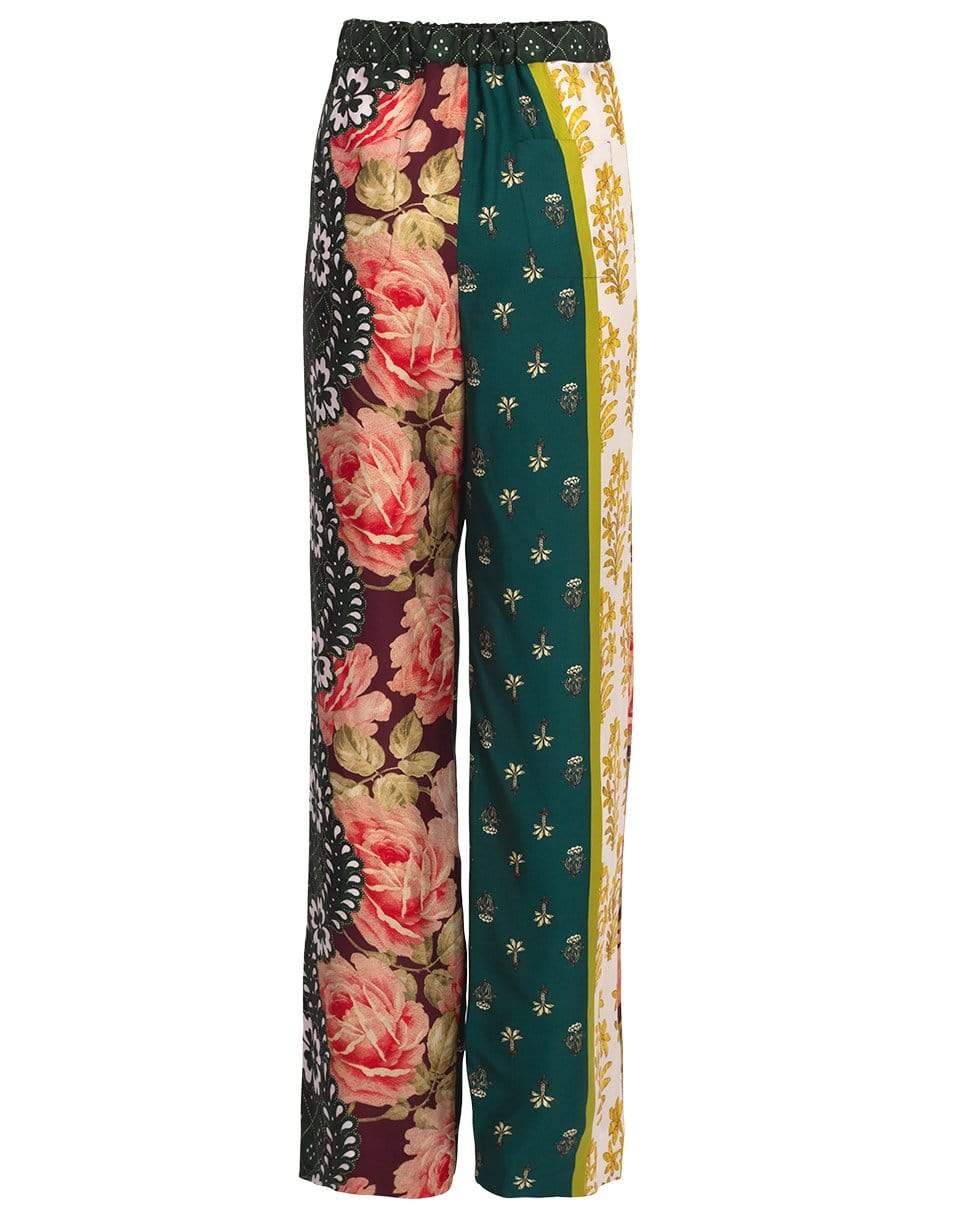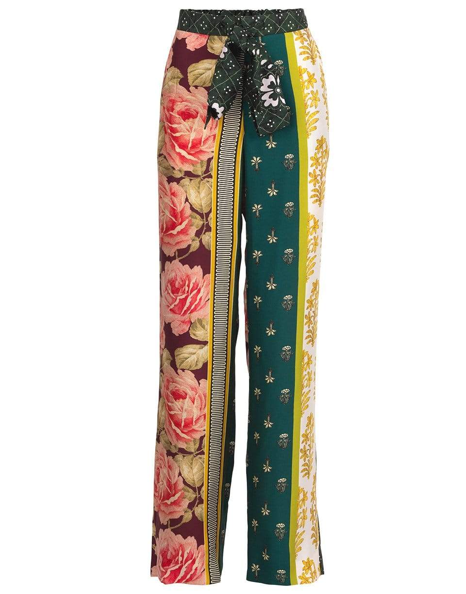 Patchwork stripe twill pajama pant from Oscar de la Renta featuring a relaxed fit with a tab/concealed button closure, and tie at waist.