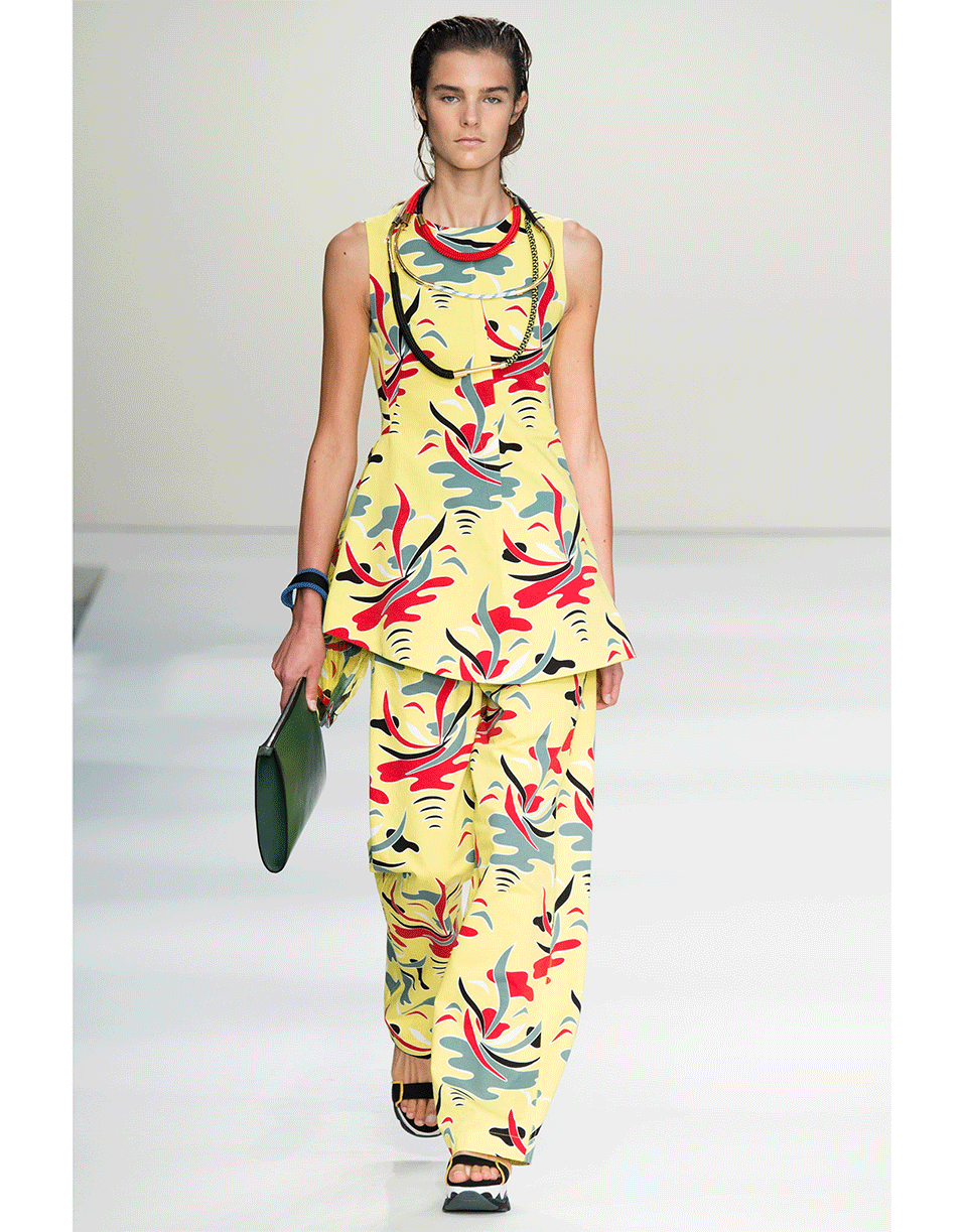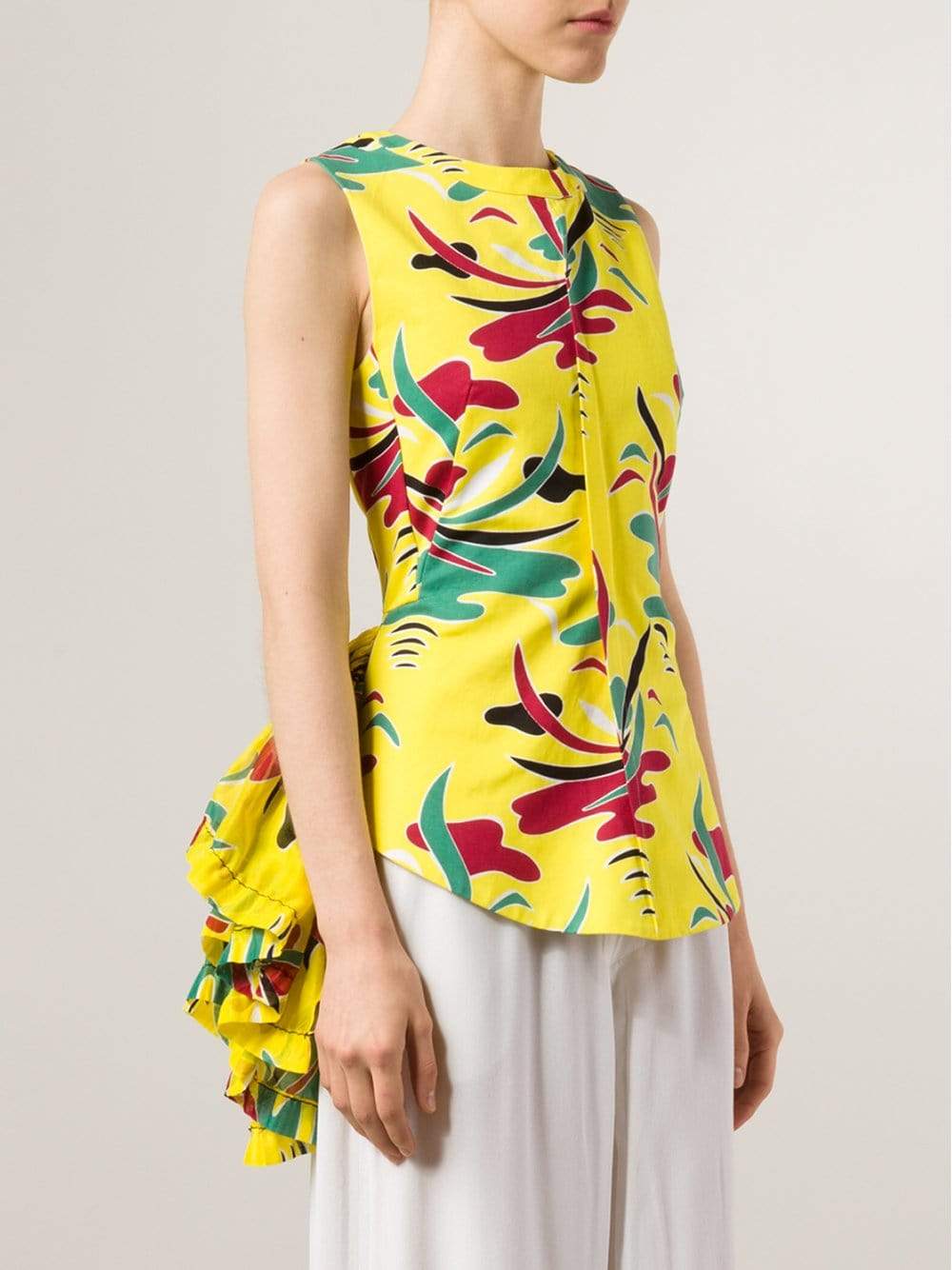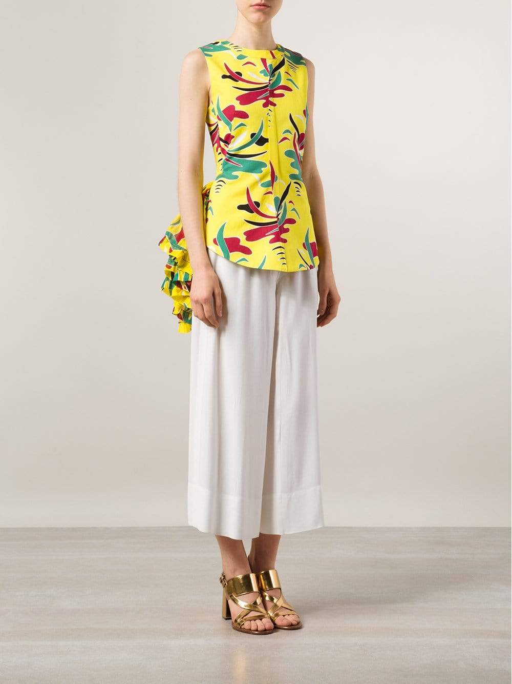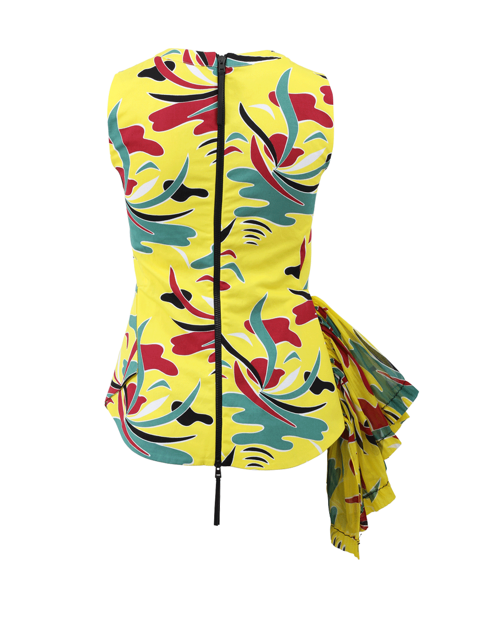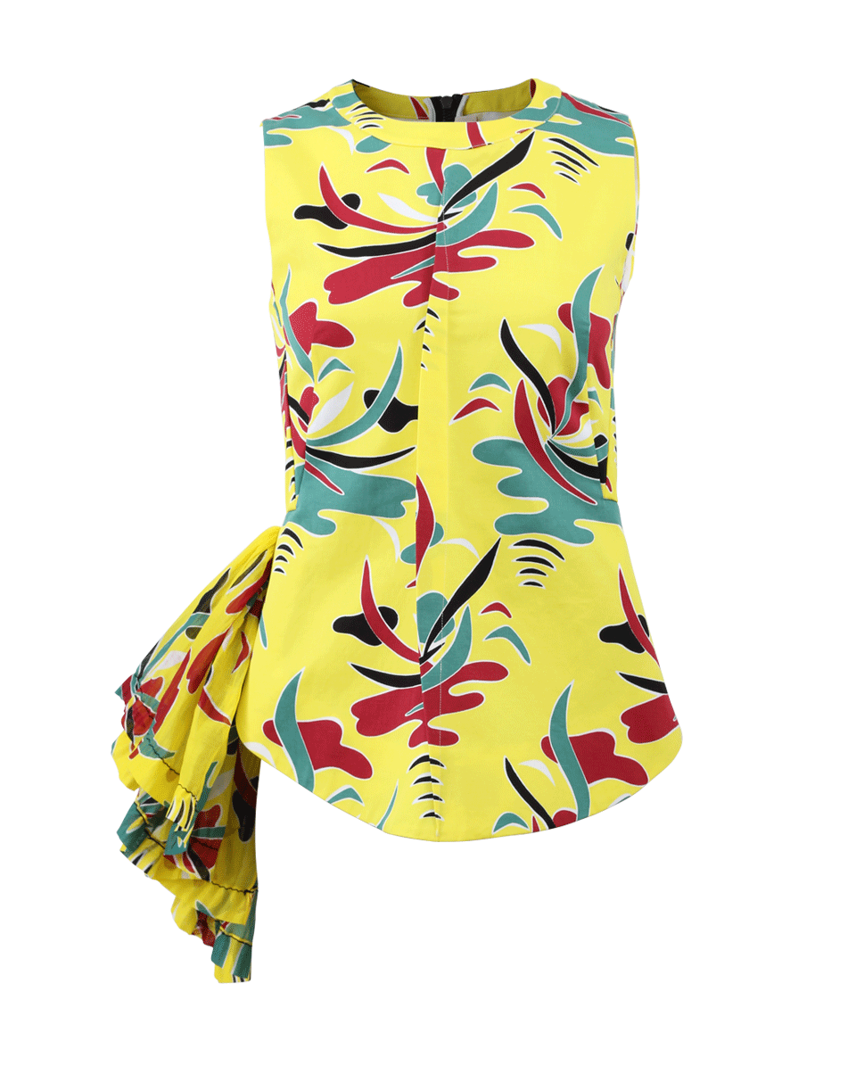 Jewel Neckline With Side Ruffle Chiffon Detail And Foldover Front Placket Pleat