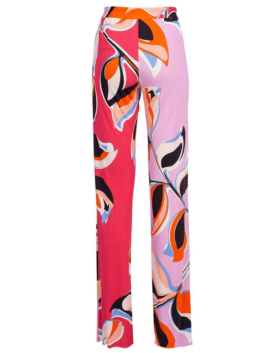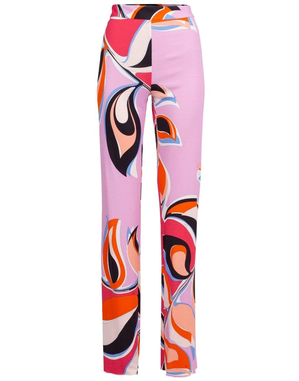 Printed straight leg trousers from Emilio Pucci featuring a high-rise, side zip closure, and an vibrant abstact print.