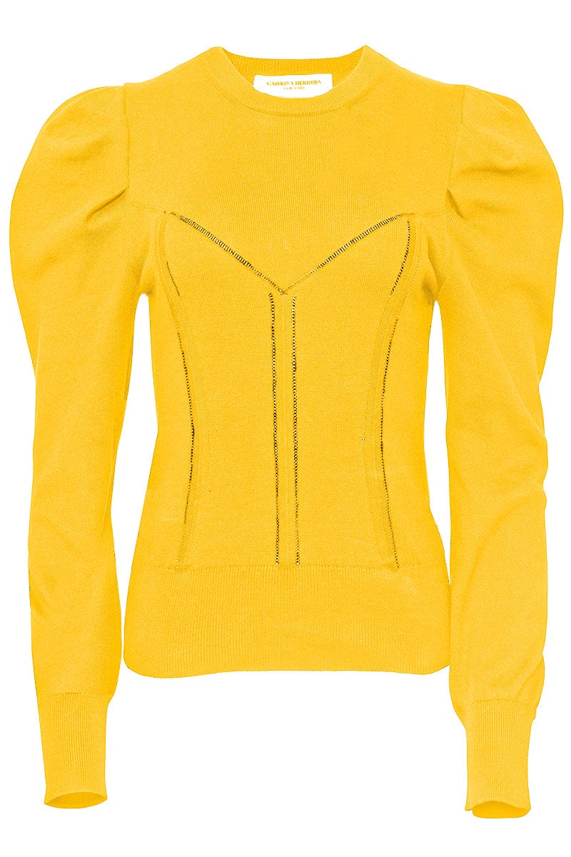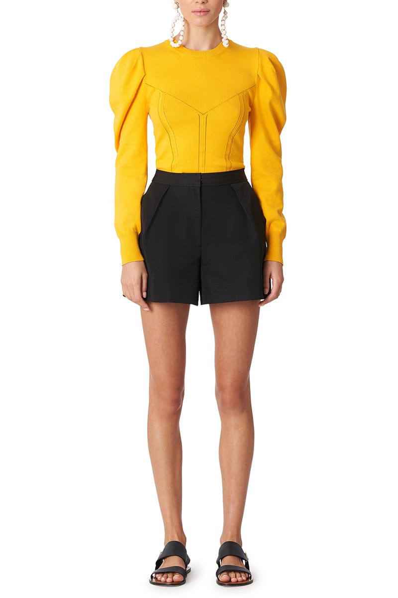 Carolina Herrera puff sleeve corset knit top in taxicab.