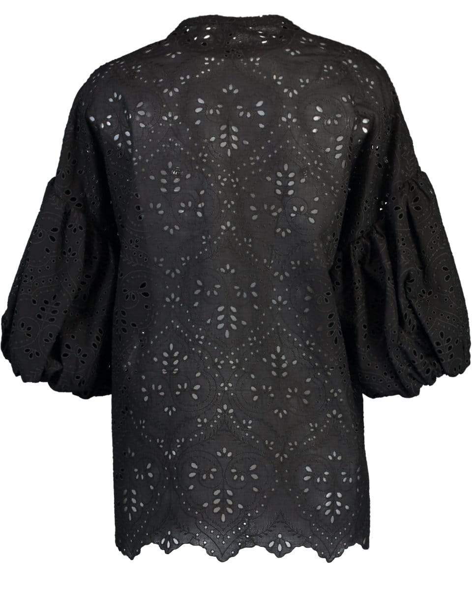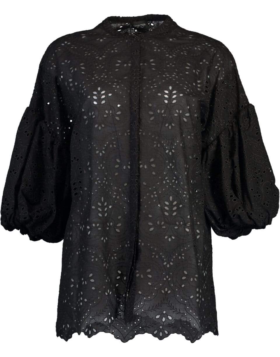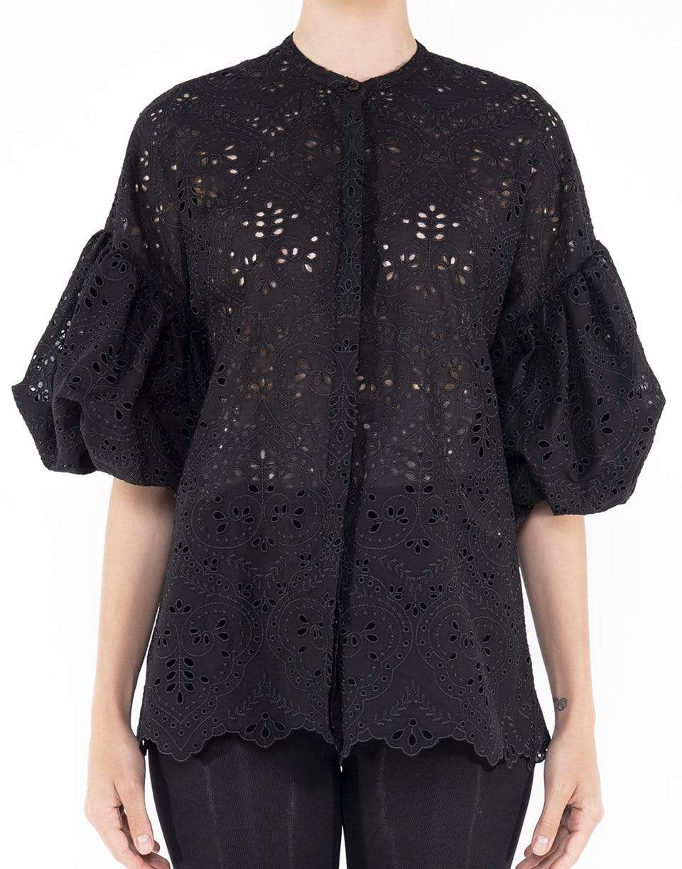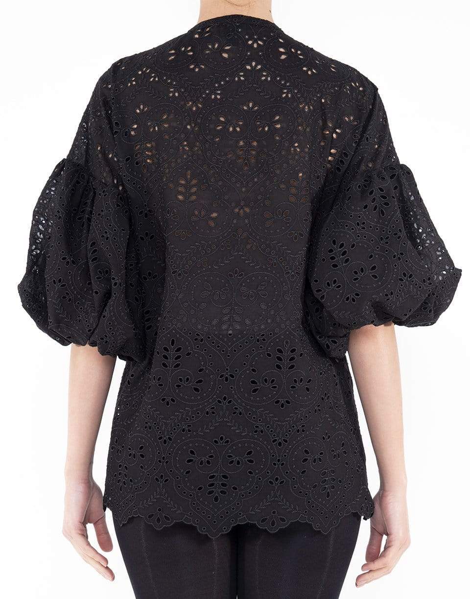 Giambattista Valli puff sleeve embroidered blouse in black.