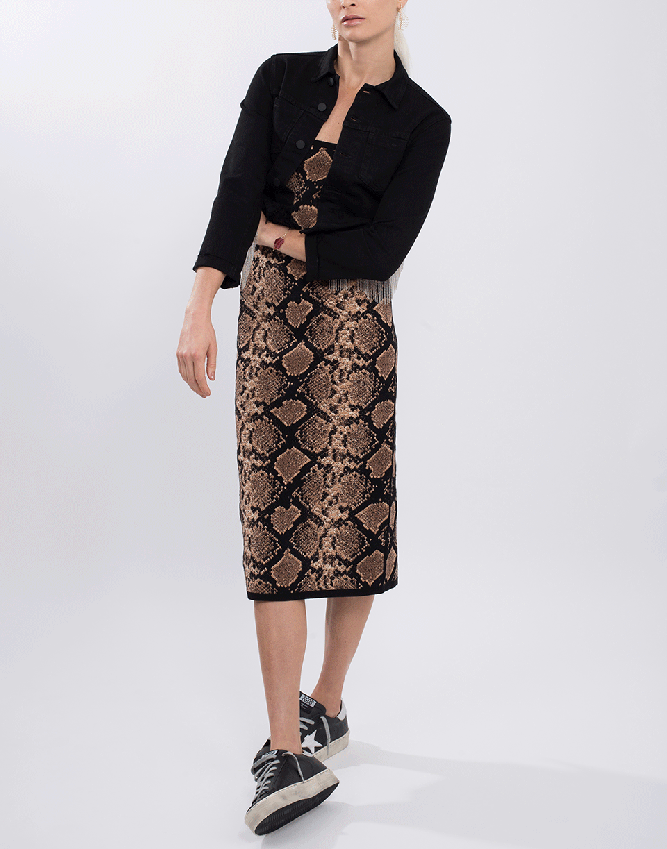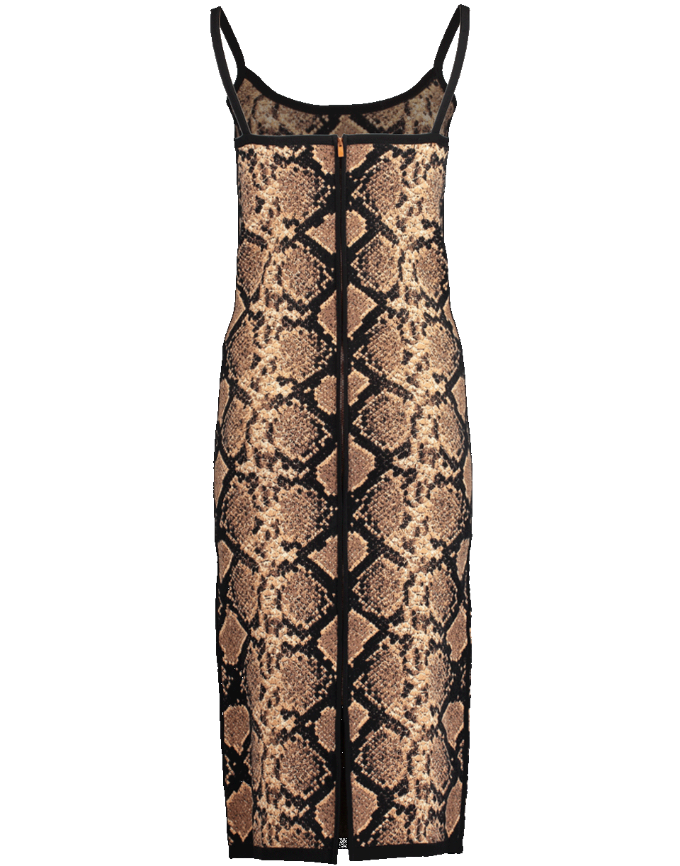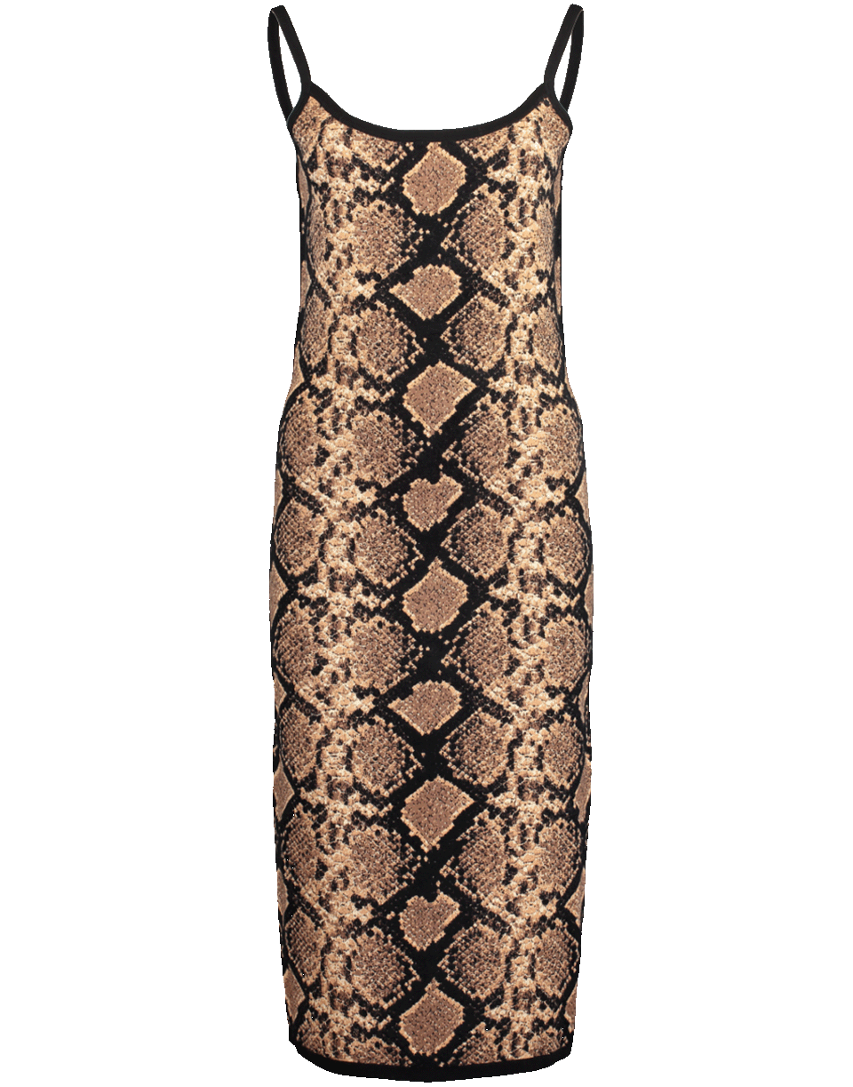 Python print midi slip dress from Michael Kors featuring a slim fit, spaghetti straps, round neck, and a pullover style.