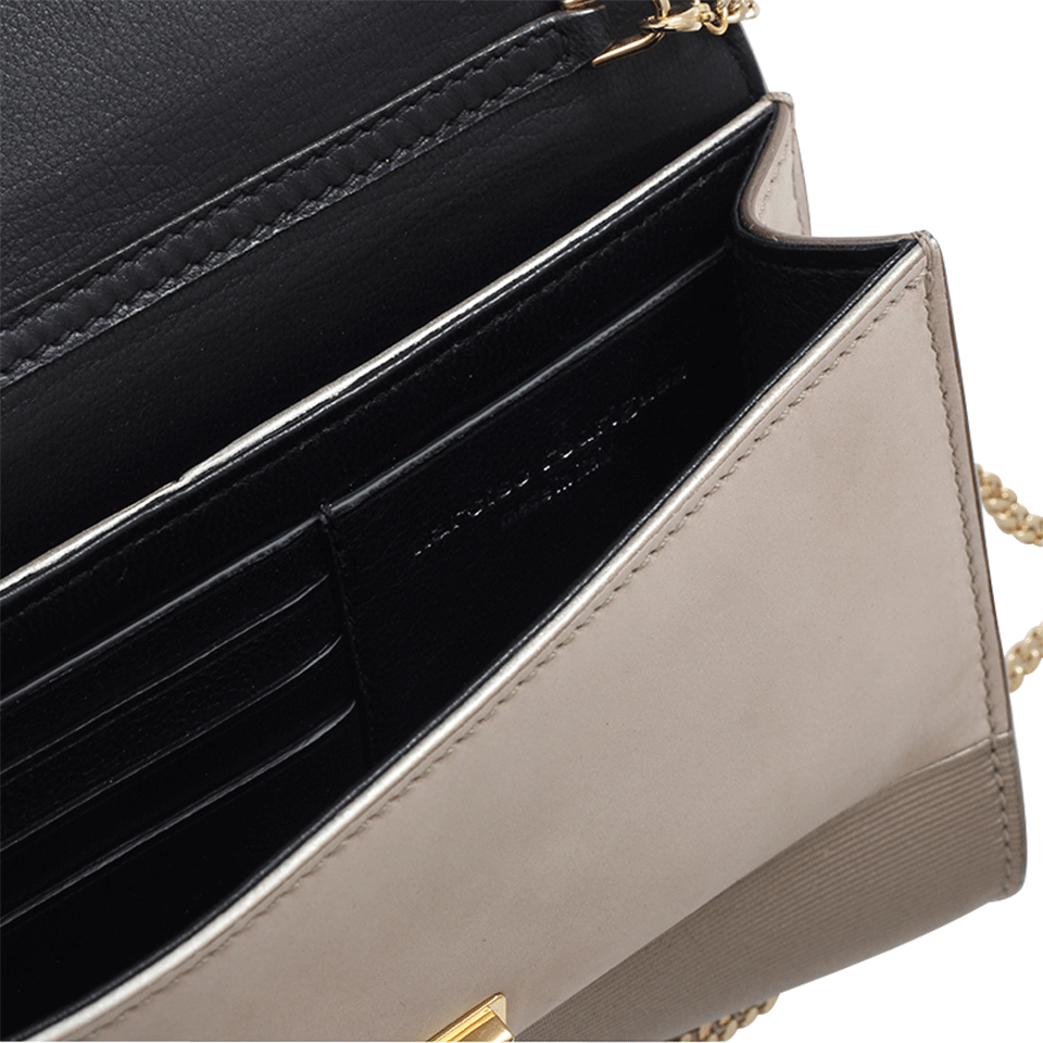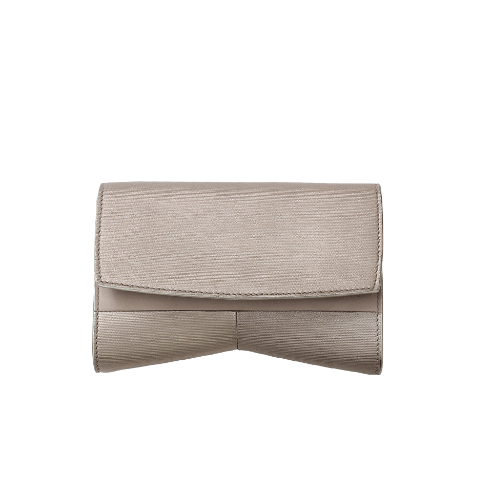 Push Box Front Flap Closure With Gold Hardware And Textured Metallic Leather Outer With Suede Detailing