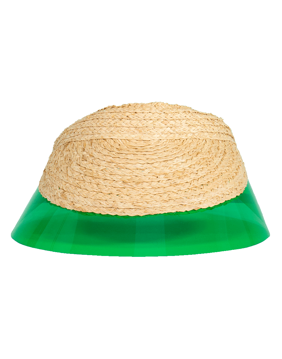 Shield your eyes and protect your skin from those harmful rays with this handwoven straw visor by Lola Hats. It features a neon green translucent brim and woven raffia straw crown.