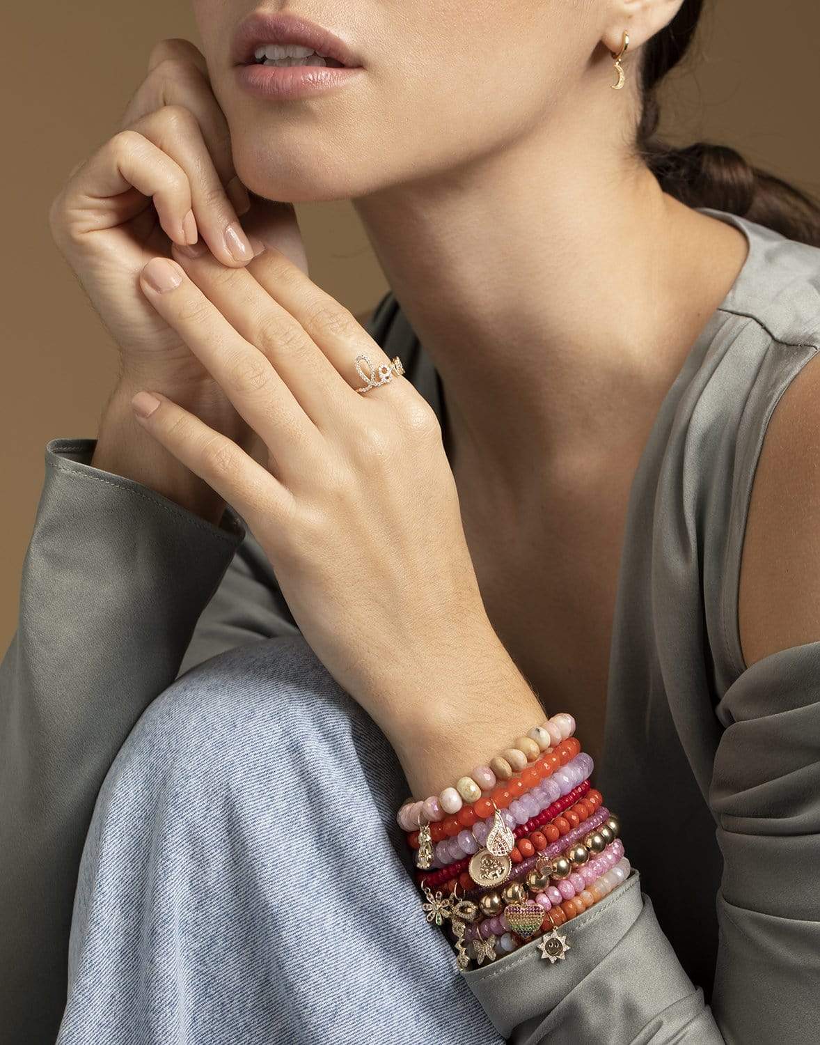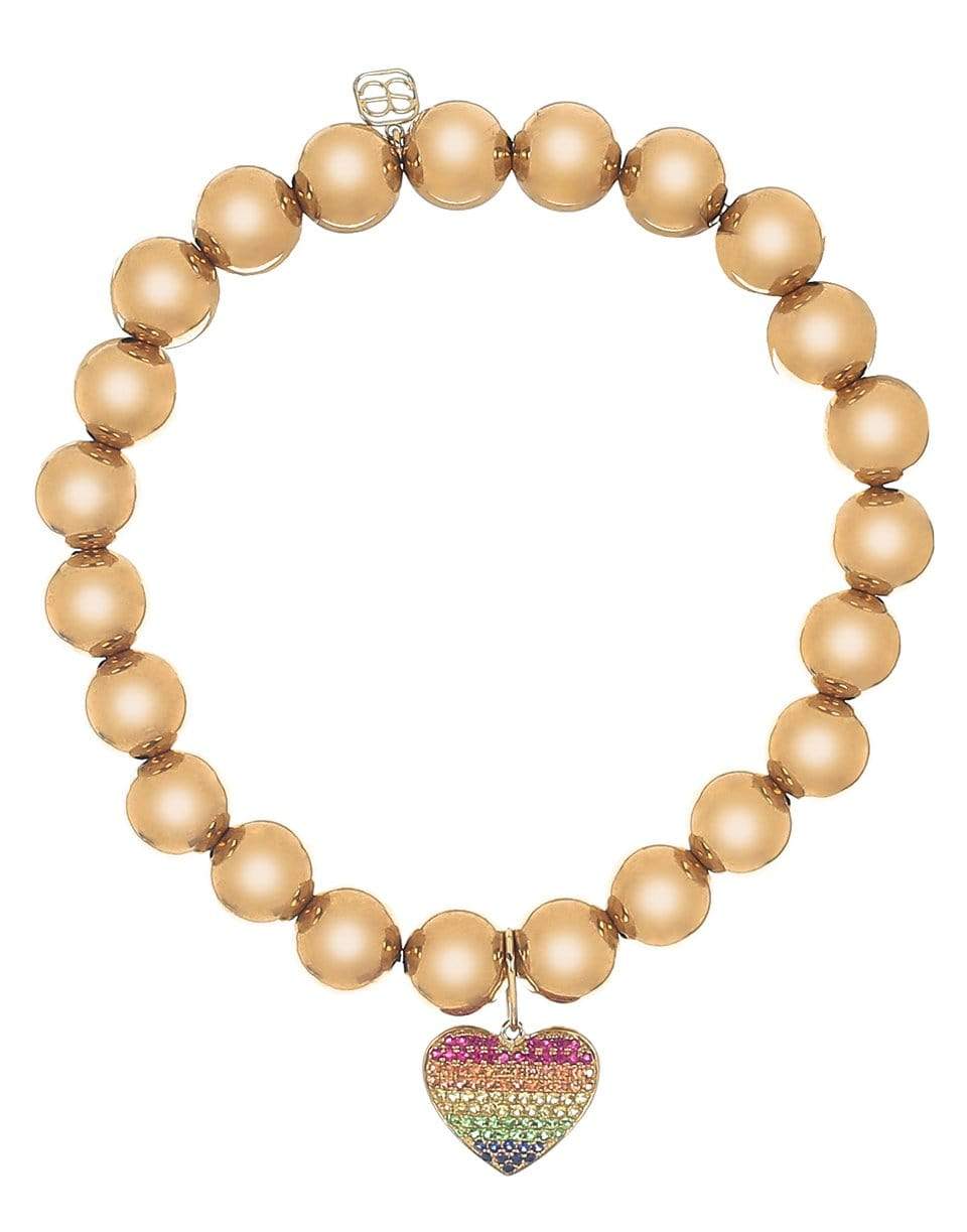 Sydney Evan rainbow heart gold bead bracelet.