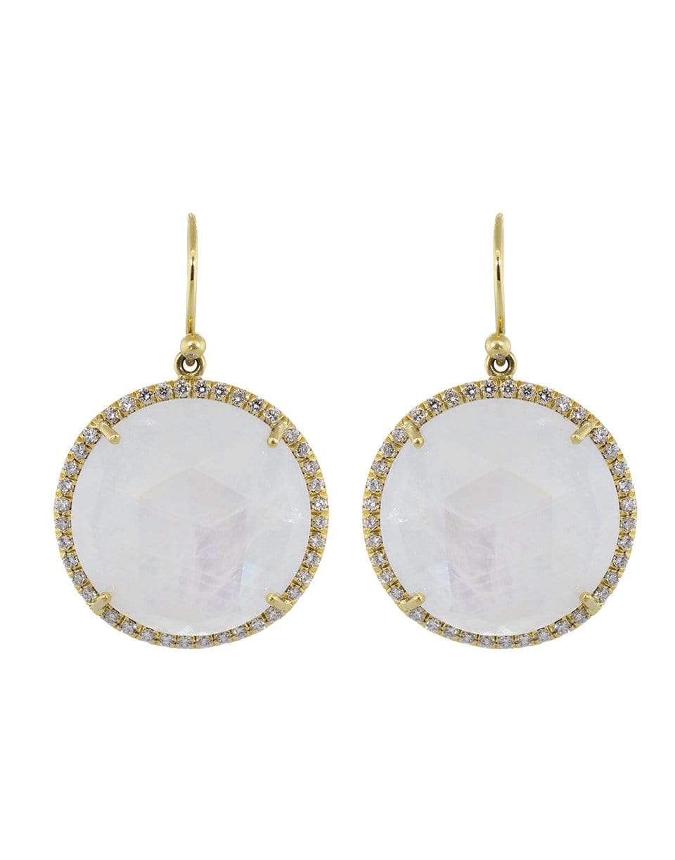 Irene Neuwirth rainbow moonstone and diamond pave drop earrings set in 18k yellow gold. For pierced ears.