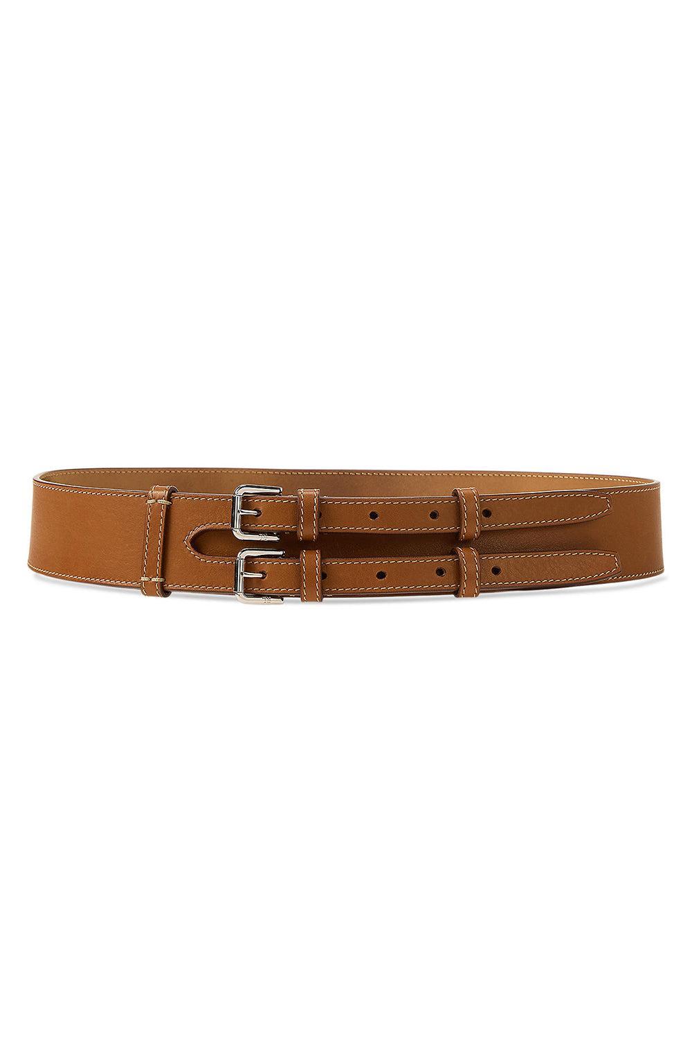 Ralph Lauren double-buckle skinny waist belt in rl gold.