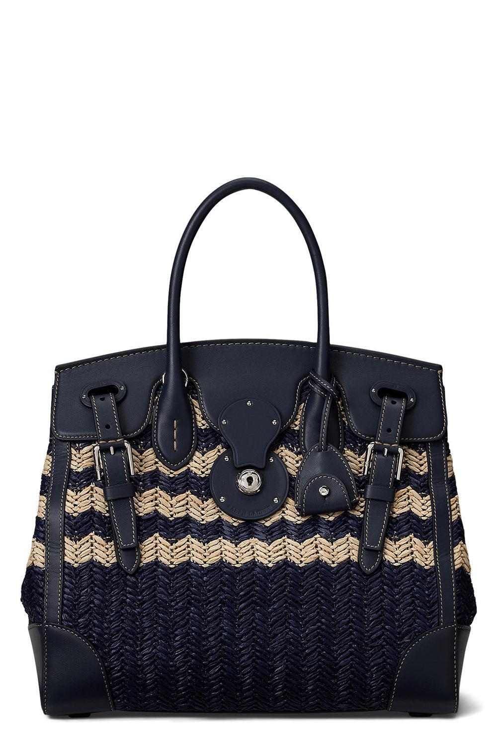 Ralph Lauren soft ricky 33 raffia bag in navy/natural.