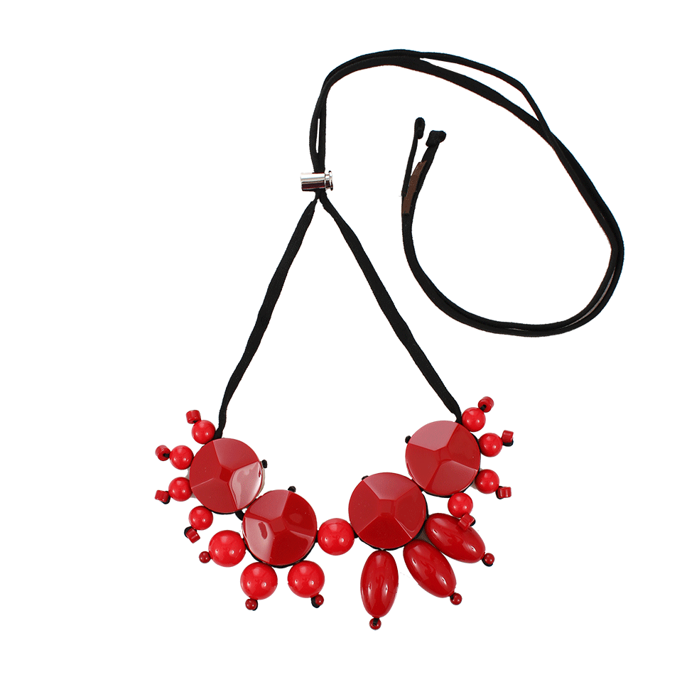 Marni's Raspberry Resin Statement Necklace Featuring An Adjustable Cord To Work With Any Neckline