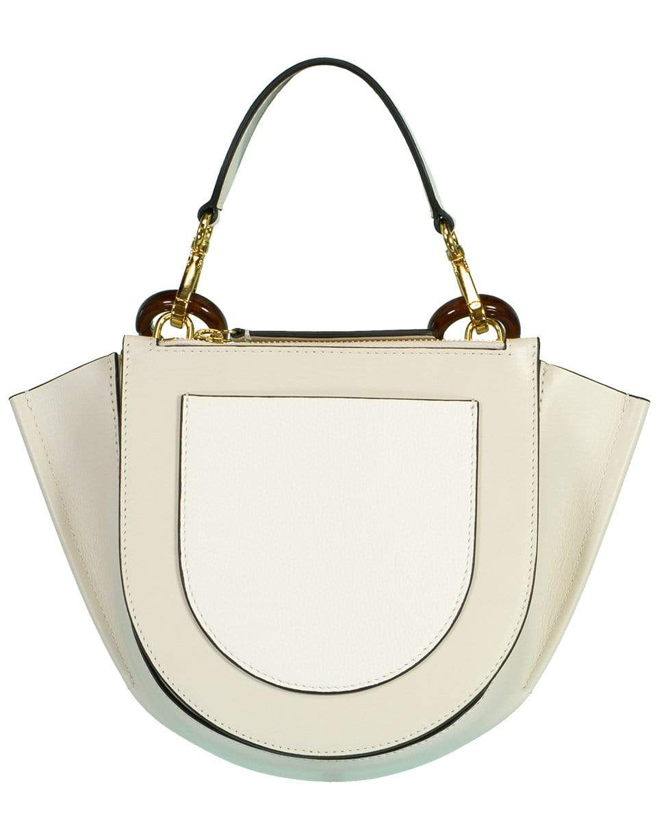 Handmade Italian calf leather Wandler Hortensia Bag with a leather and resin top handle, multiple compartments, and an adjustable shoulder strap.