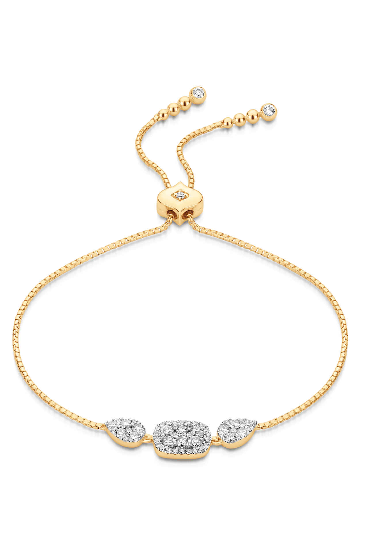 Sara Weinstock reverie cushion and pear diamond bolo bracelet. This feminine 18k gold bolo bracelet asks to layered with other pieces, but can easily be styled on its own. It features three diamond clusters in cushion and pear settings.