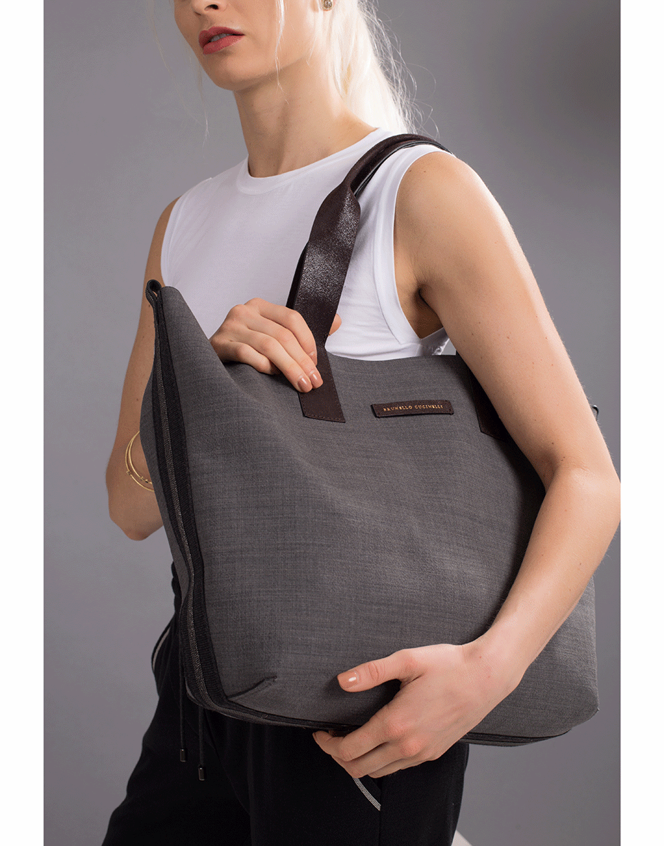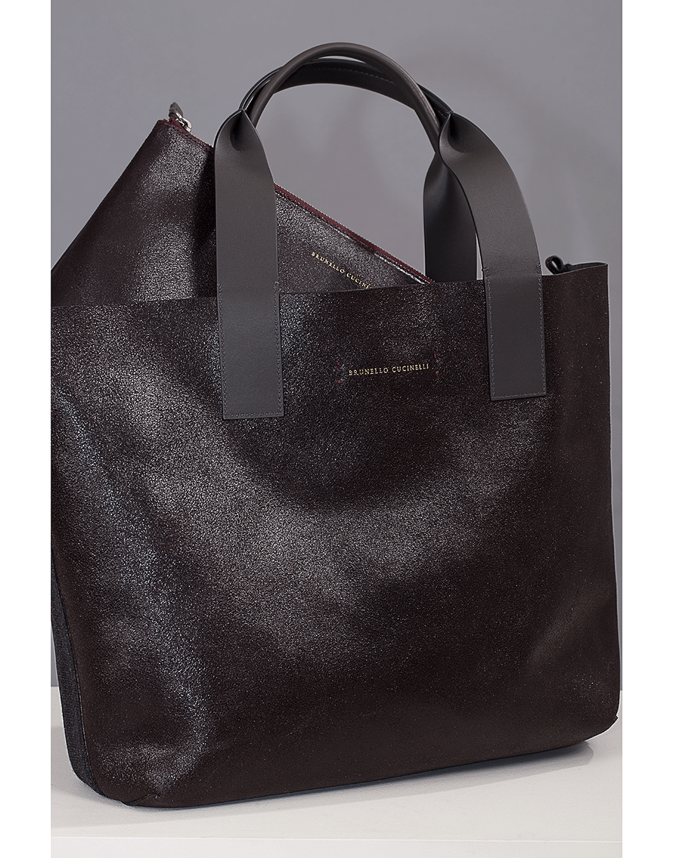 Two handle tote by Brunello Cucinelli. This classic tote is the perfect size to carry your everyday essentials. It has a spacious interior with a removable zip pouch and leather top handles.