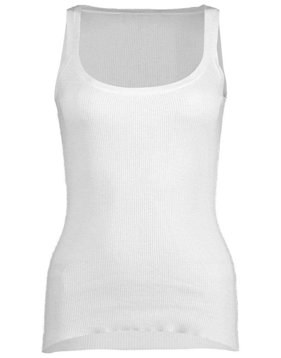 White cotton ribbed scoop neck tank from Michael Kors featuring a slim fit, sleeveless design, and pullover style.