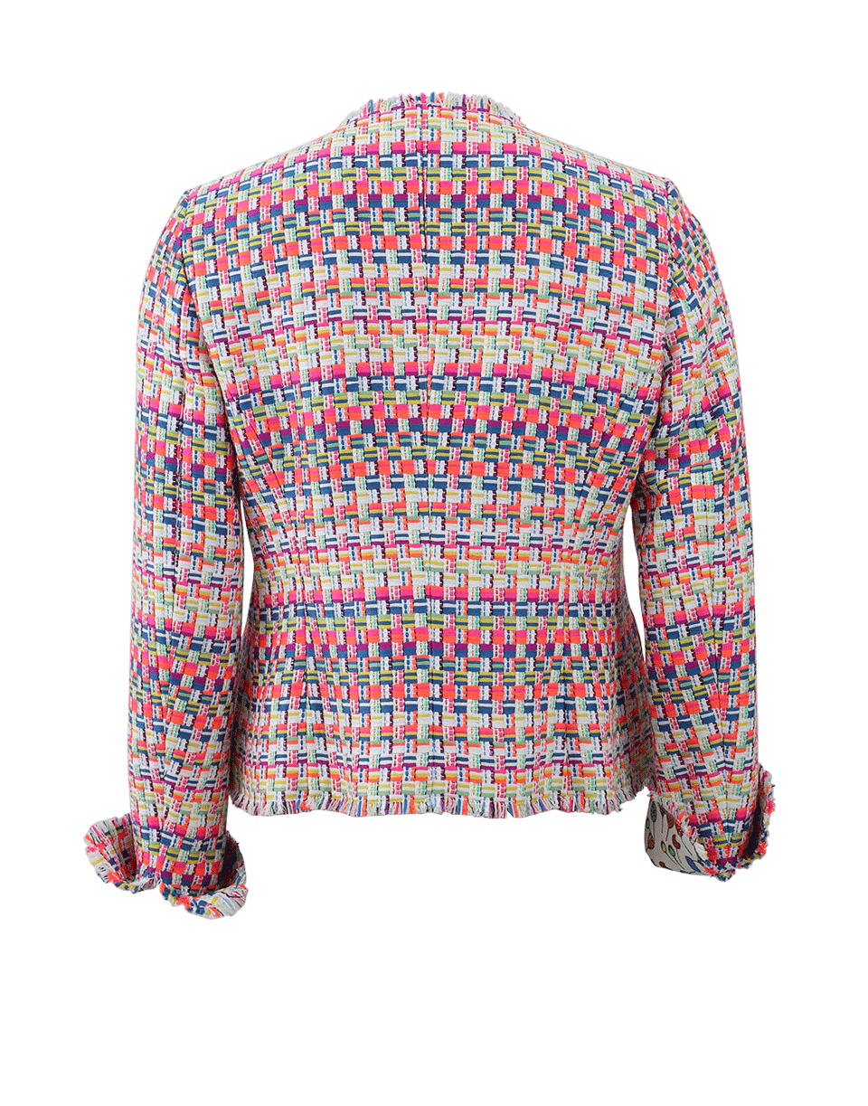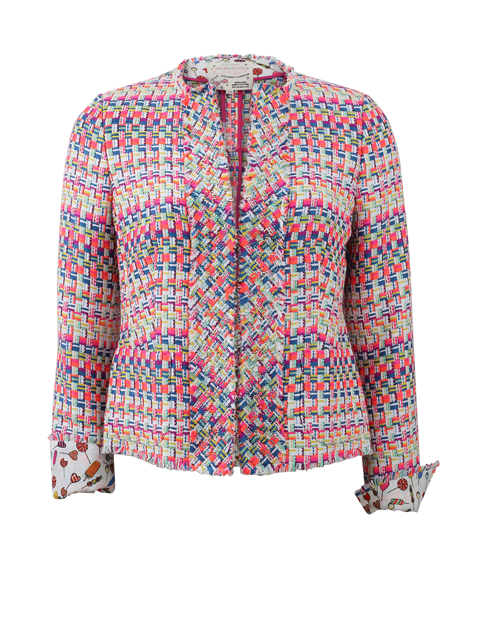 Raw Edge Detail, All-Over Ribbon Weave, Long-Sleeve With Fold-Up Cuffs And Candy Print Lining, Loose-Fitting Silhouette