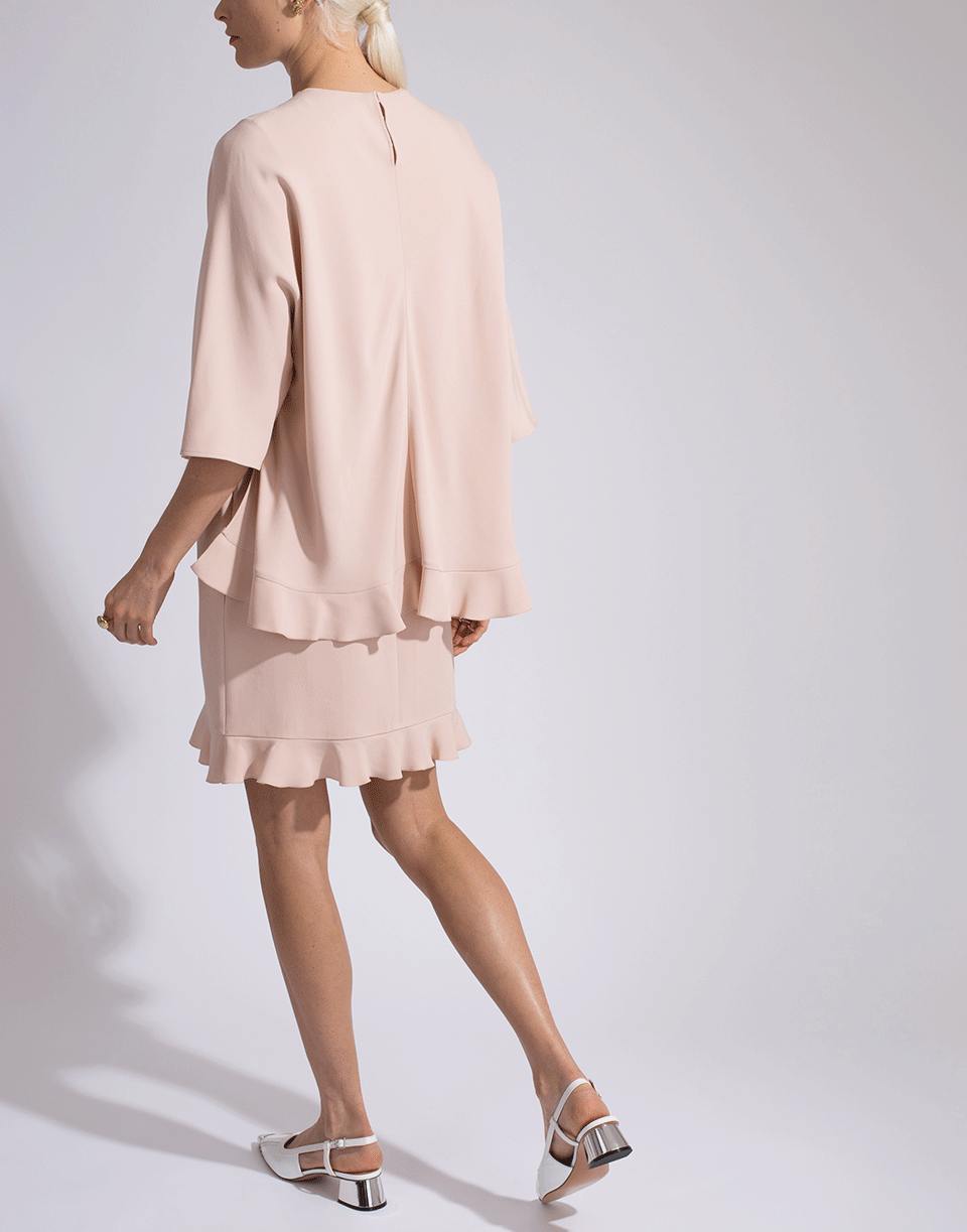 Crew Neckline With Back Zip Closure And Three Quarter Length Sleeves