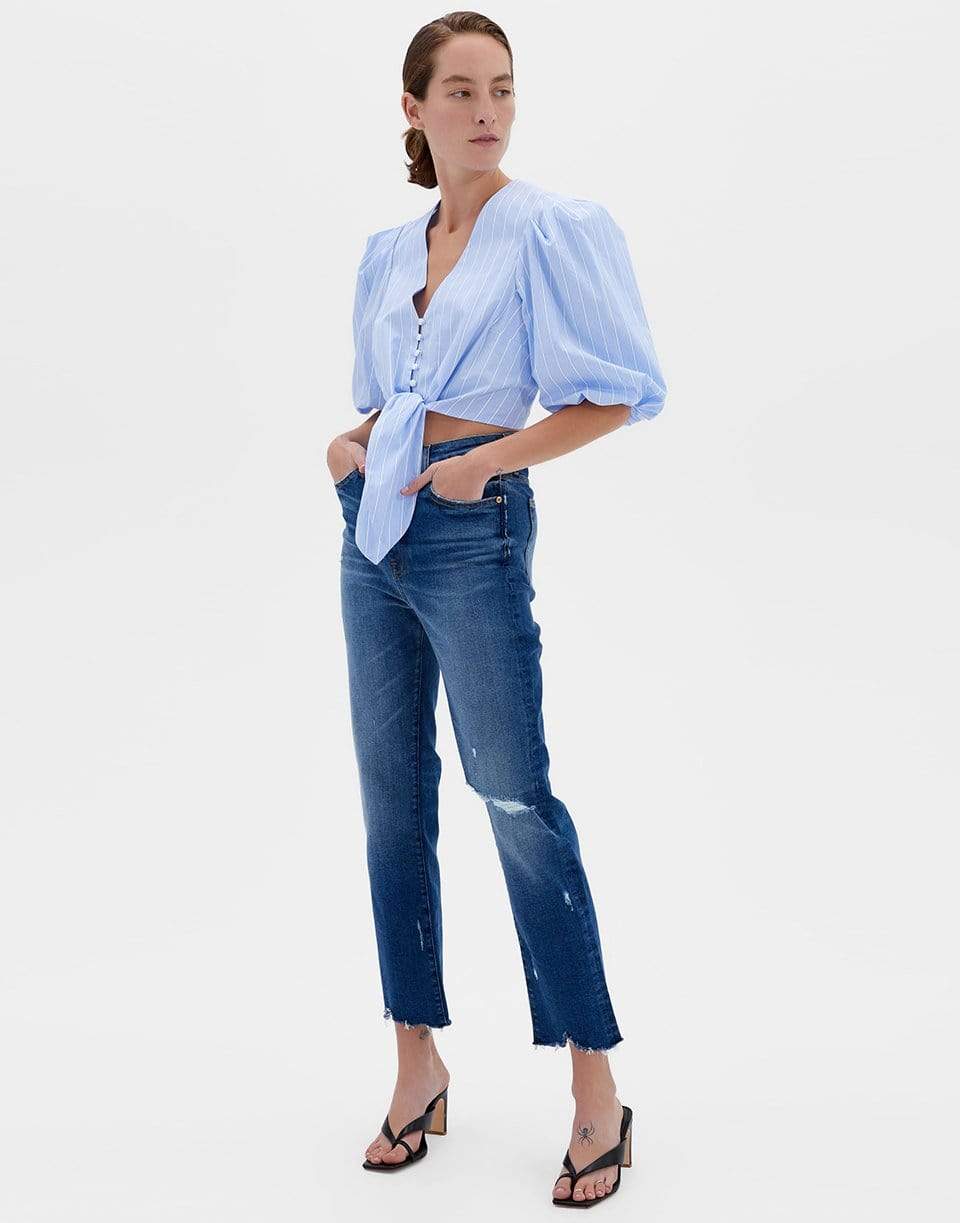 Jonathan Simkhai river high rise straight jean in Distressed