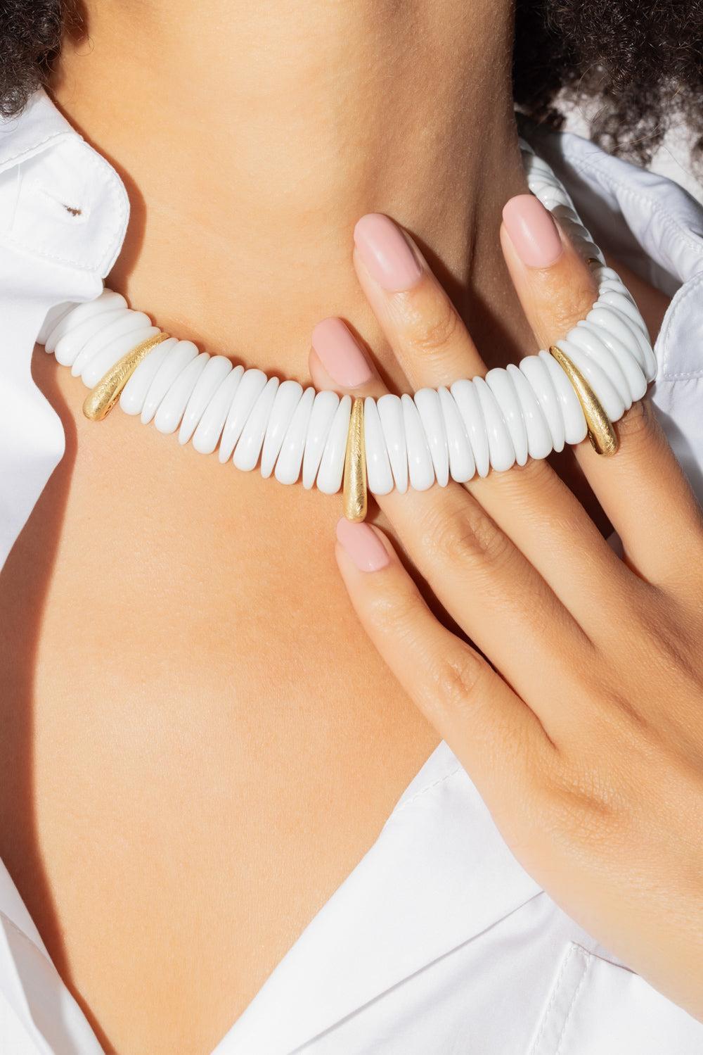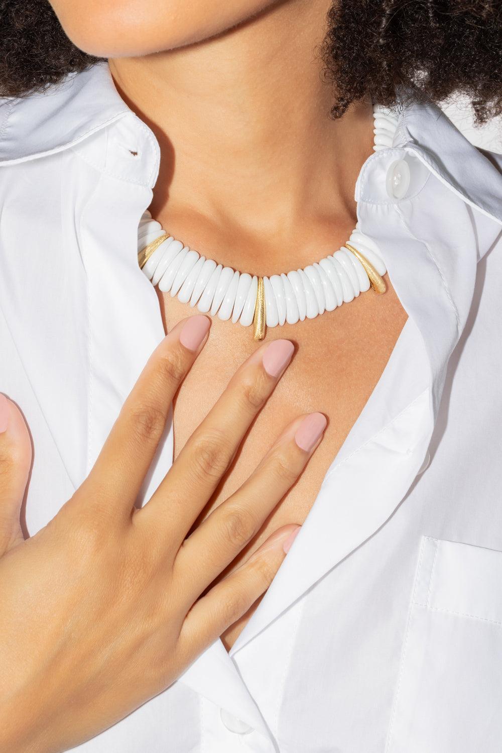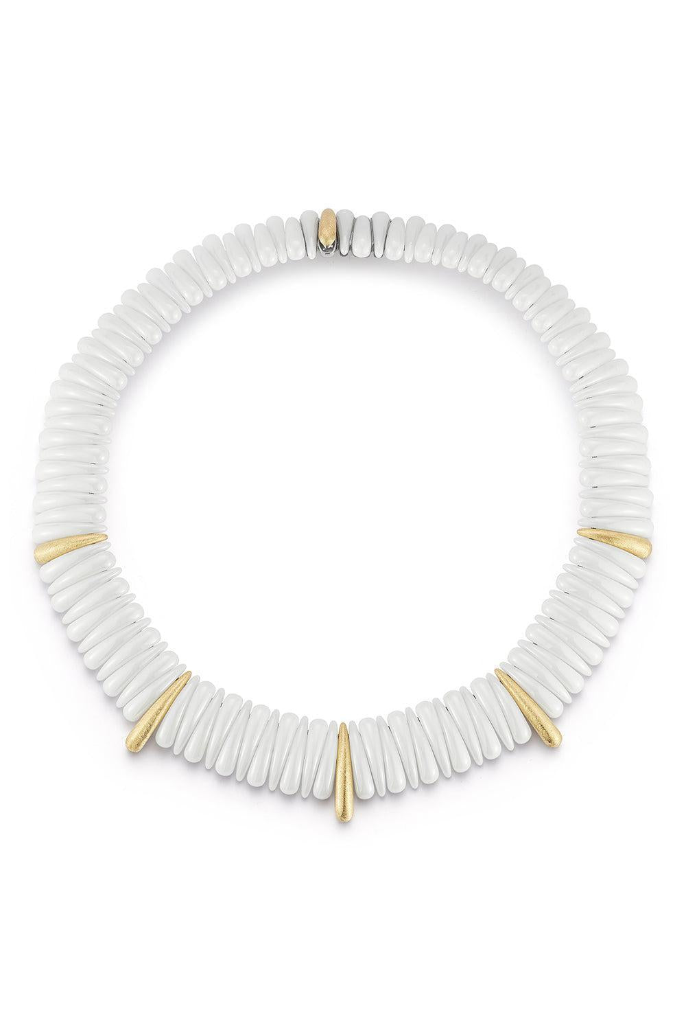 Robert Demeglio artiglio white ceramic necklace in yellow gold.