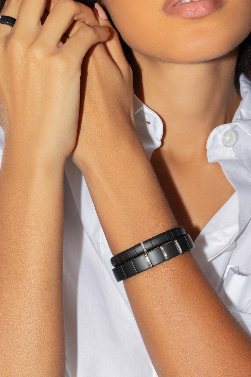Roberto Demeglio one diamond scacco black ceramic bracelet in white gold.